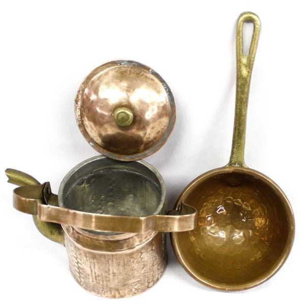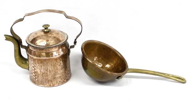 2 Pieces of Vintage Copper Collectibles, includes 1 Copper and Brass Tea Kettle and 1 Copper and Brass Dipper (largest measuring 3'' x 5'' x 11'')