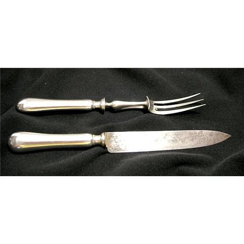 2 Pieces to Serve (knife and fort). With the hallmark GB, and the steel marked ?Paris? as you can see in the pictures. In very good conditions, probably French, ideal for meat. Length (Knife): 12.5 inches. Length (Fort):11.2 inches.