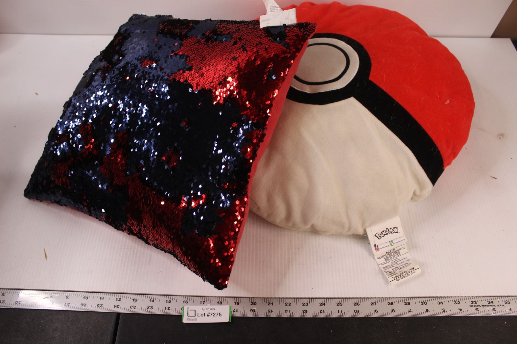 (2) Pillows: Blue and Red Sequin, Pokeball