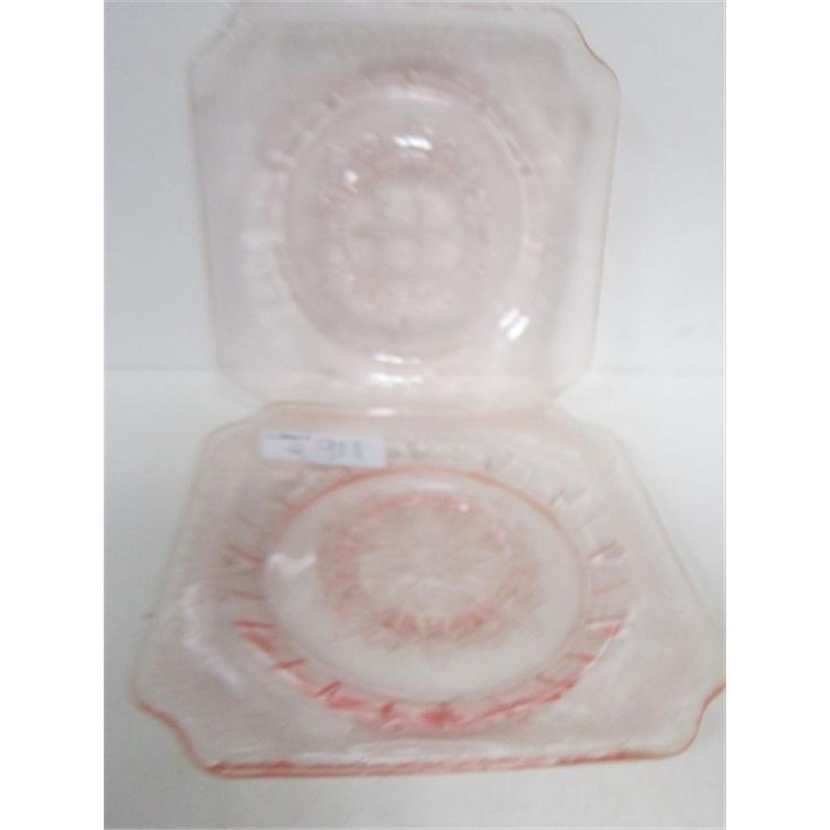 2 Pink Adam square saucers-6" depression glass