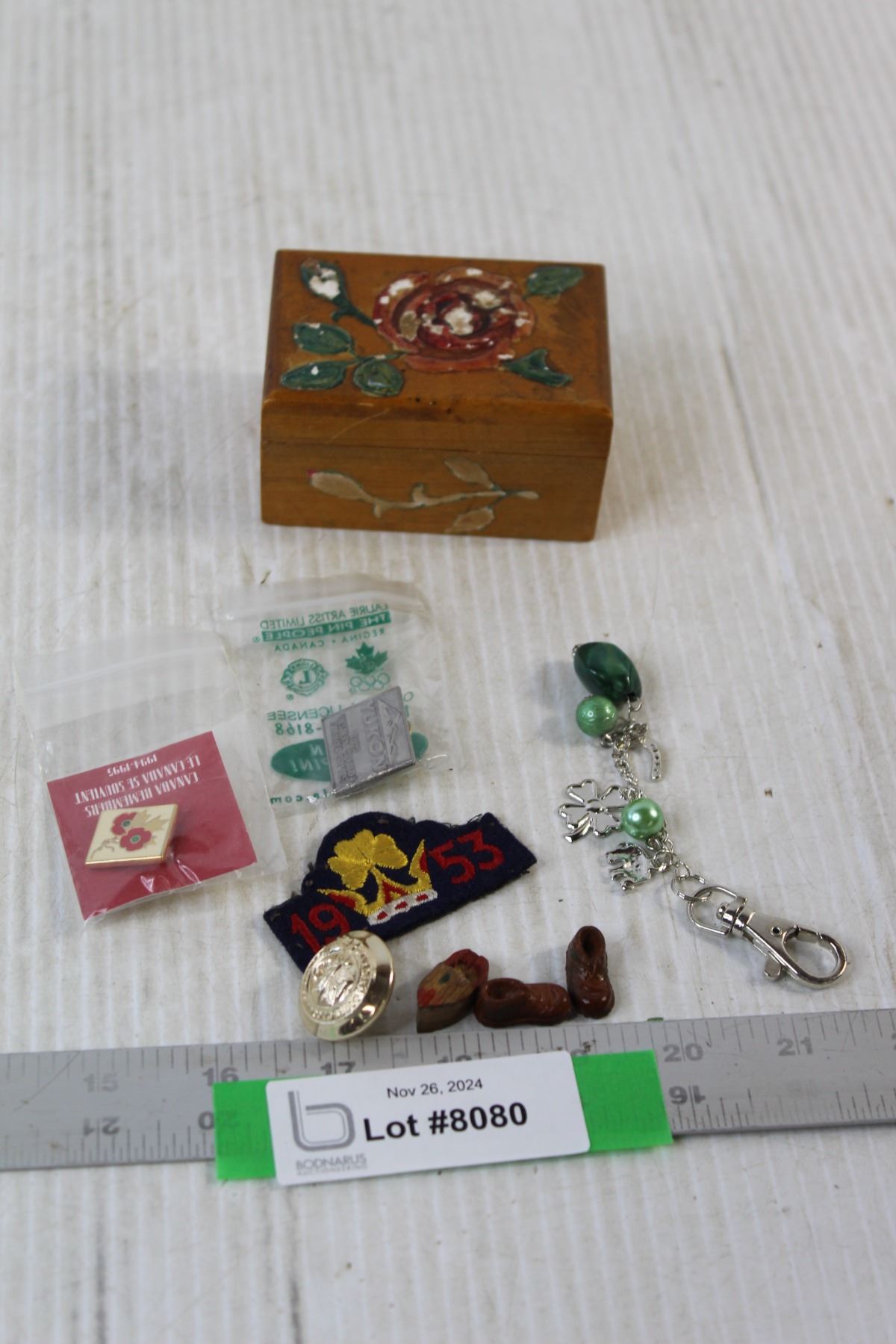 (2) Pins, Button, Keychain, (3) Mini Boots, Patch, Jewelry Box