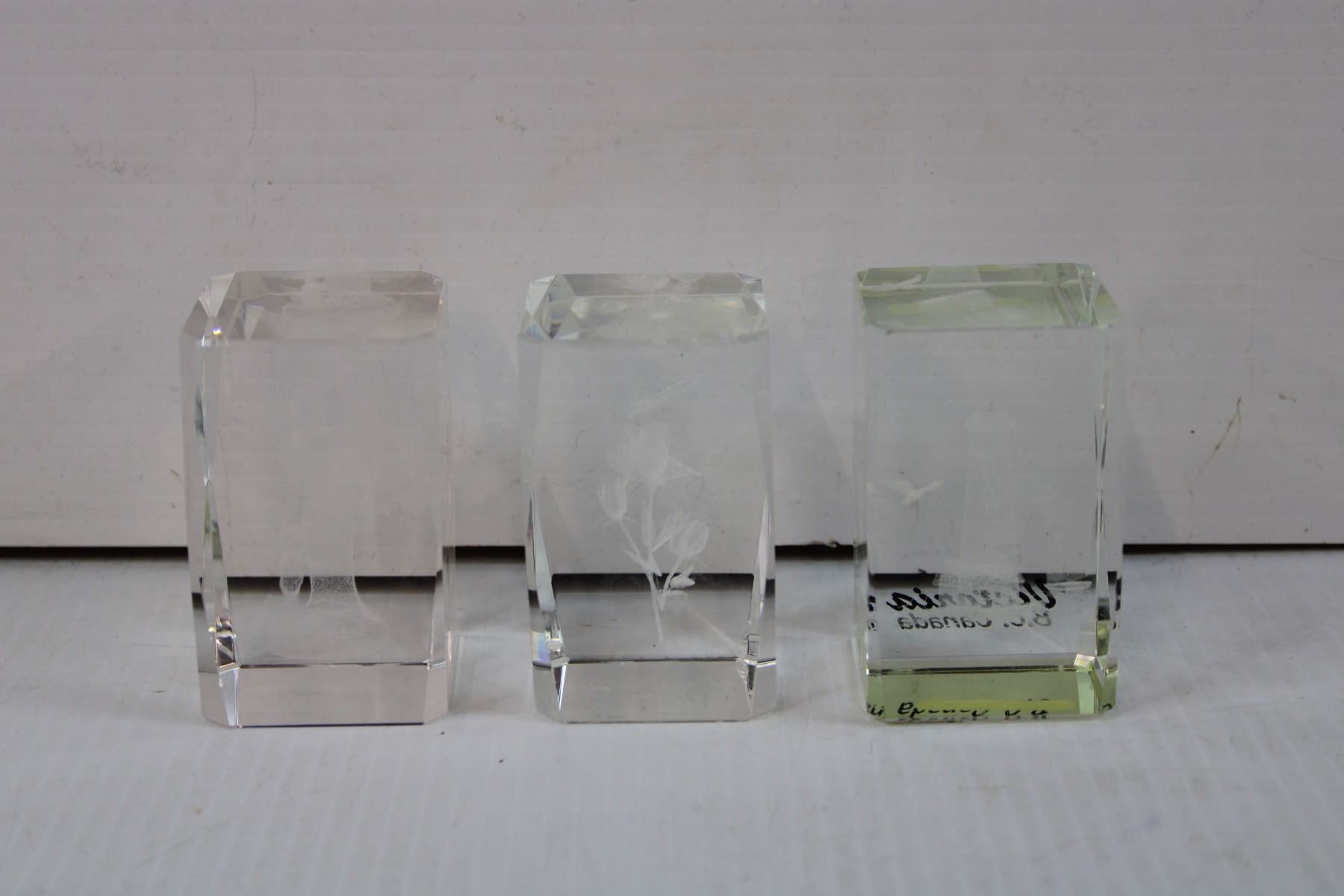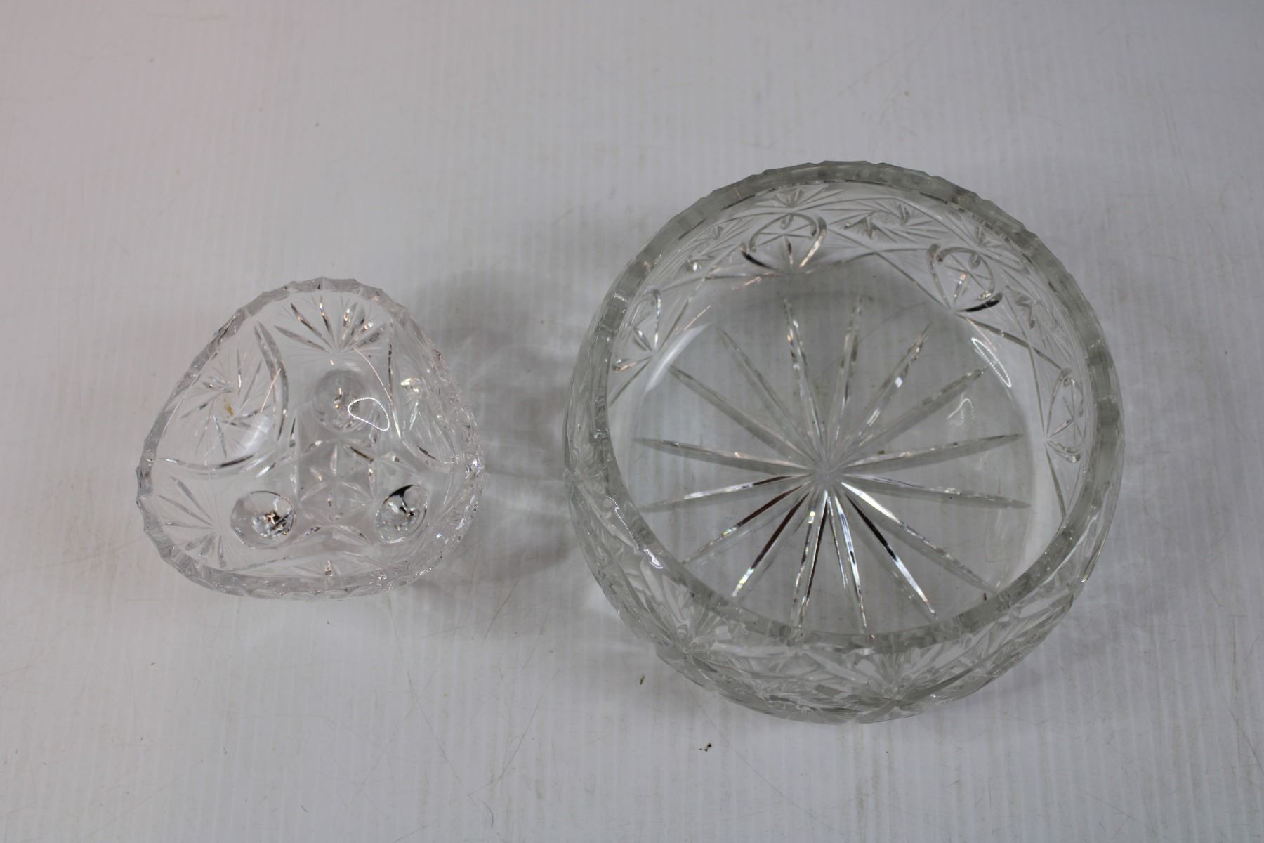 (2) Pinwheel Crystal Bowls and Three Crystal Paper Weights