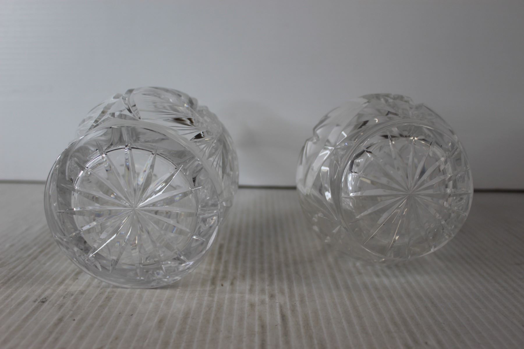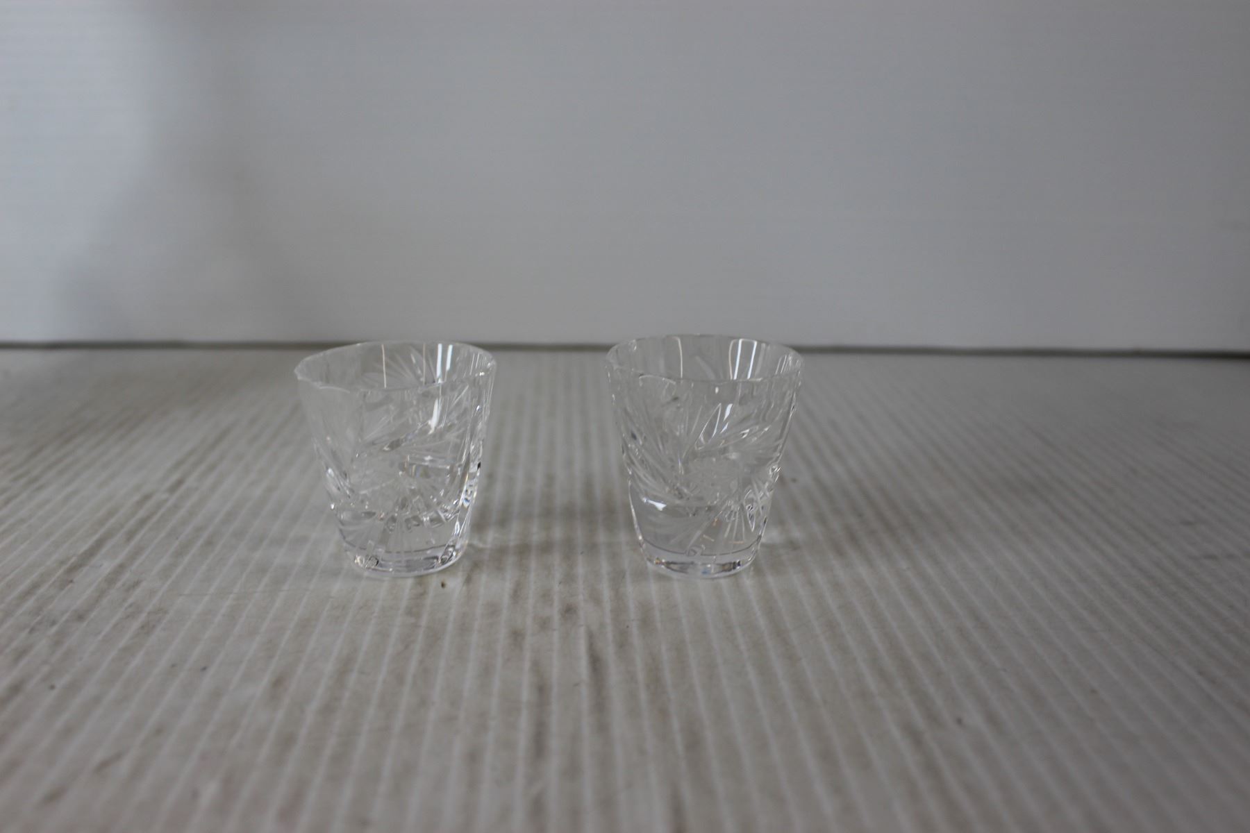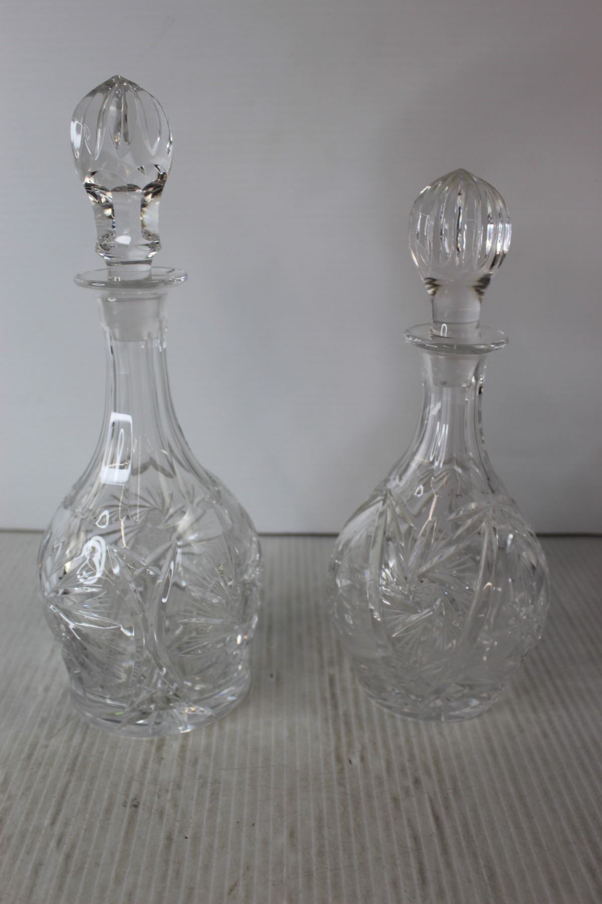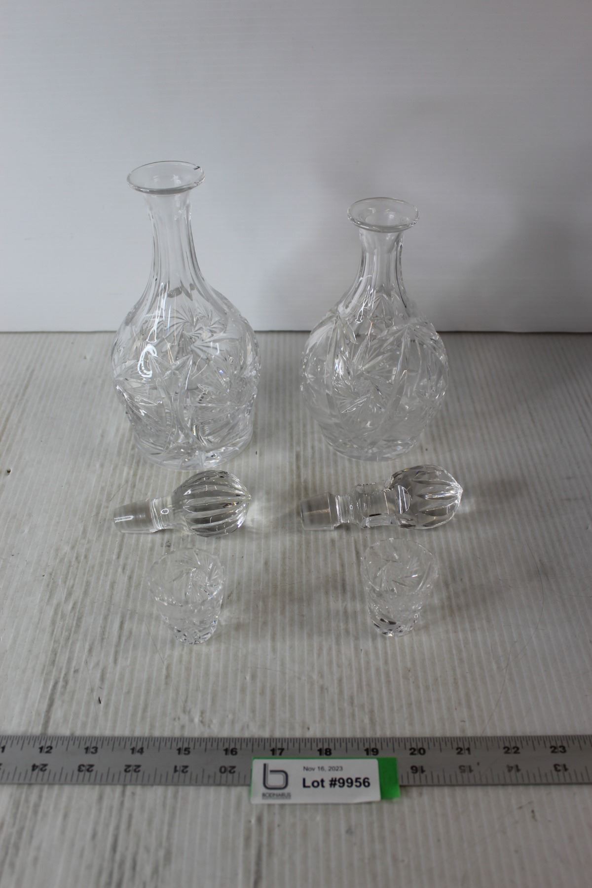(2) Pinwheel Crystal Decanters With Stoppers, (2) Pinwheel Crystal Shot Glasses