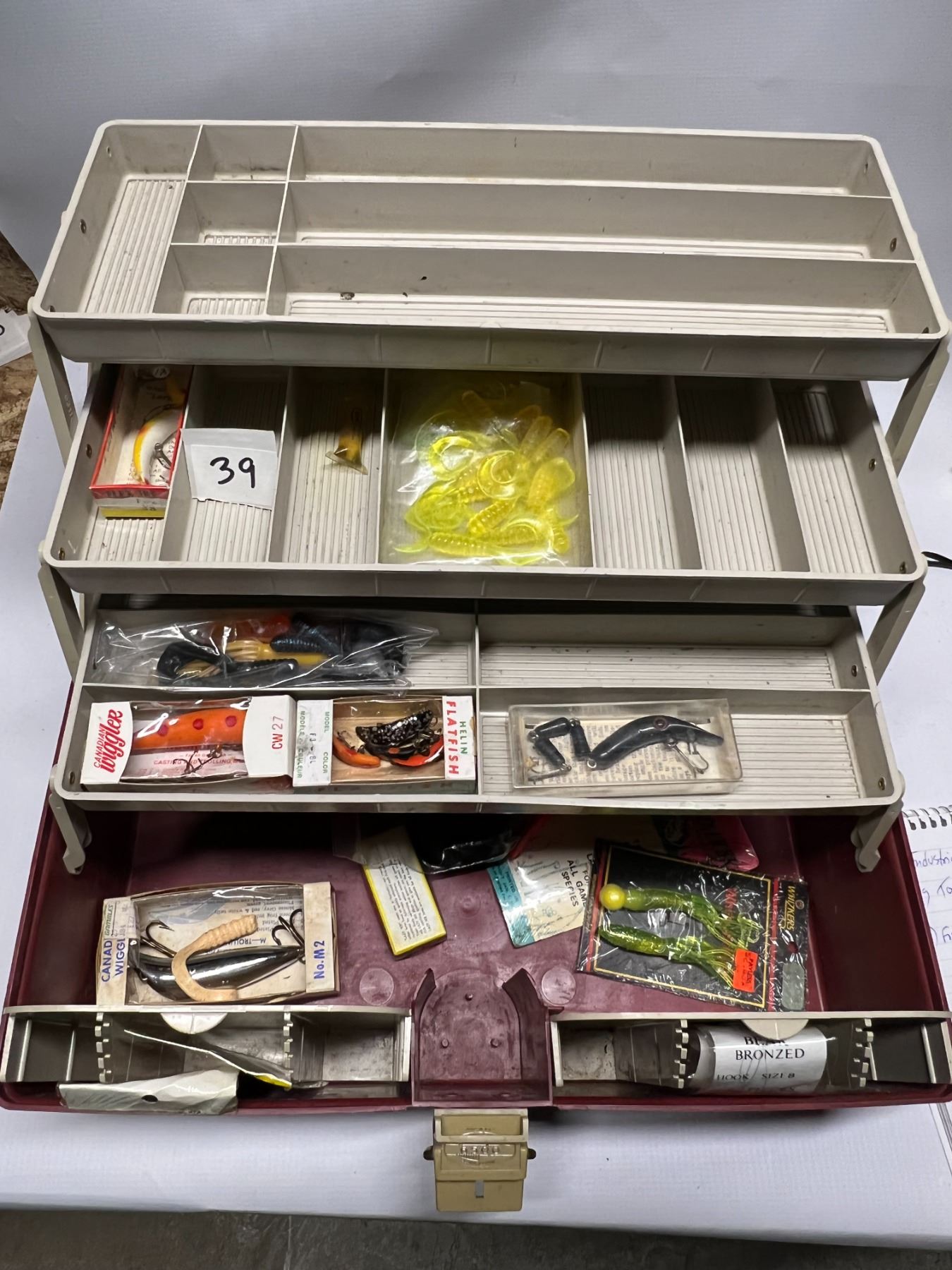 2 Plastic Fishing Tackle Boxes Rod Rack With Some Accessories As pictured