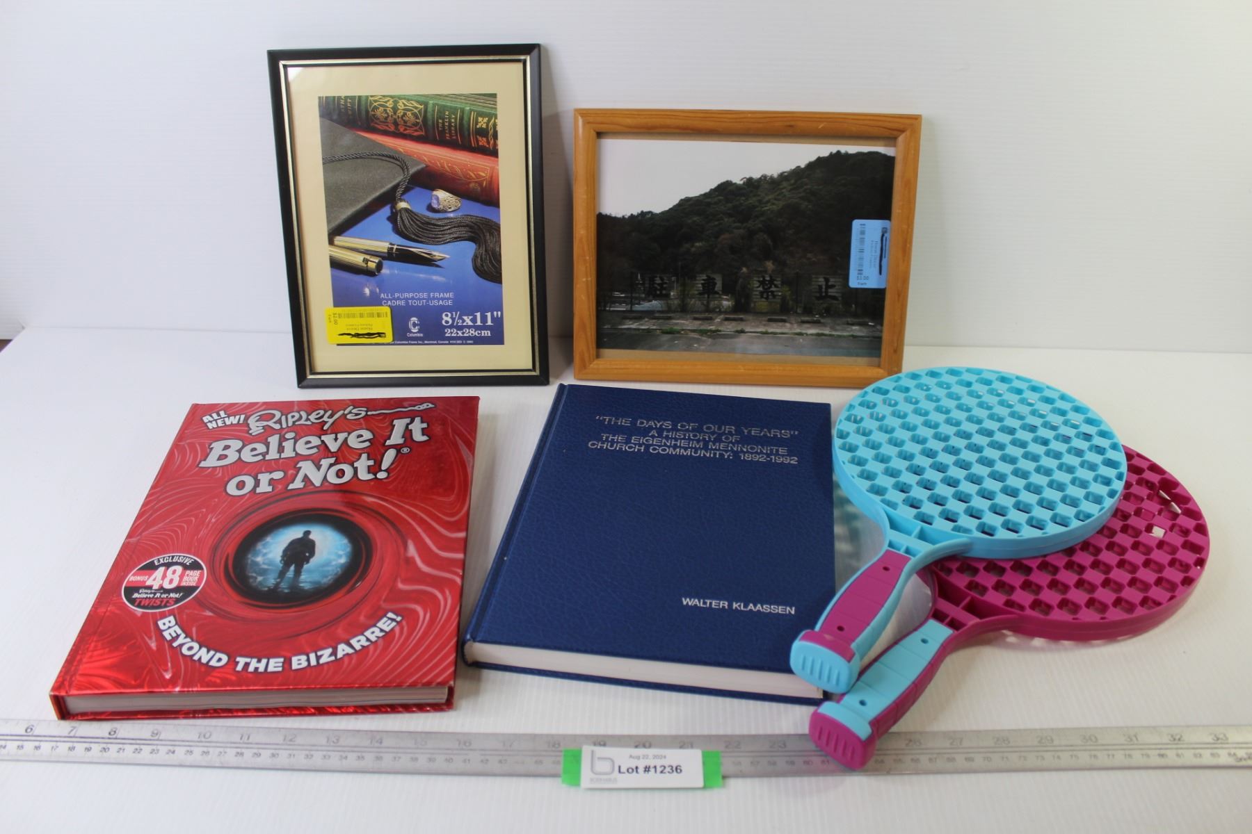 (2) Plastic Rackets - Ripley's Believe It or Not Book - The Days of Our Years Book - Empty Picture Frame (8.5" x 11") - Oriental Picture (9" x 11")