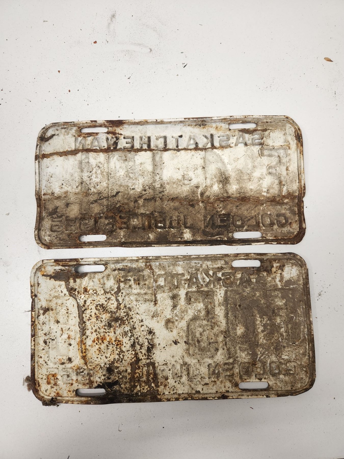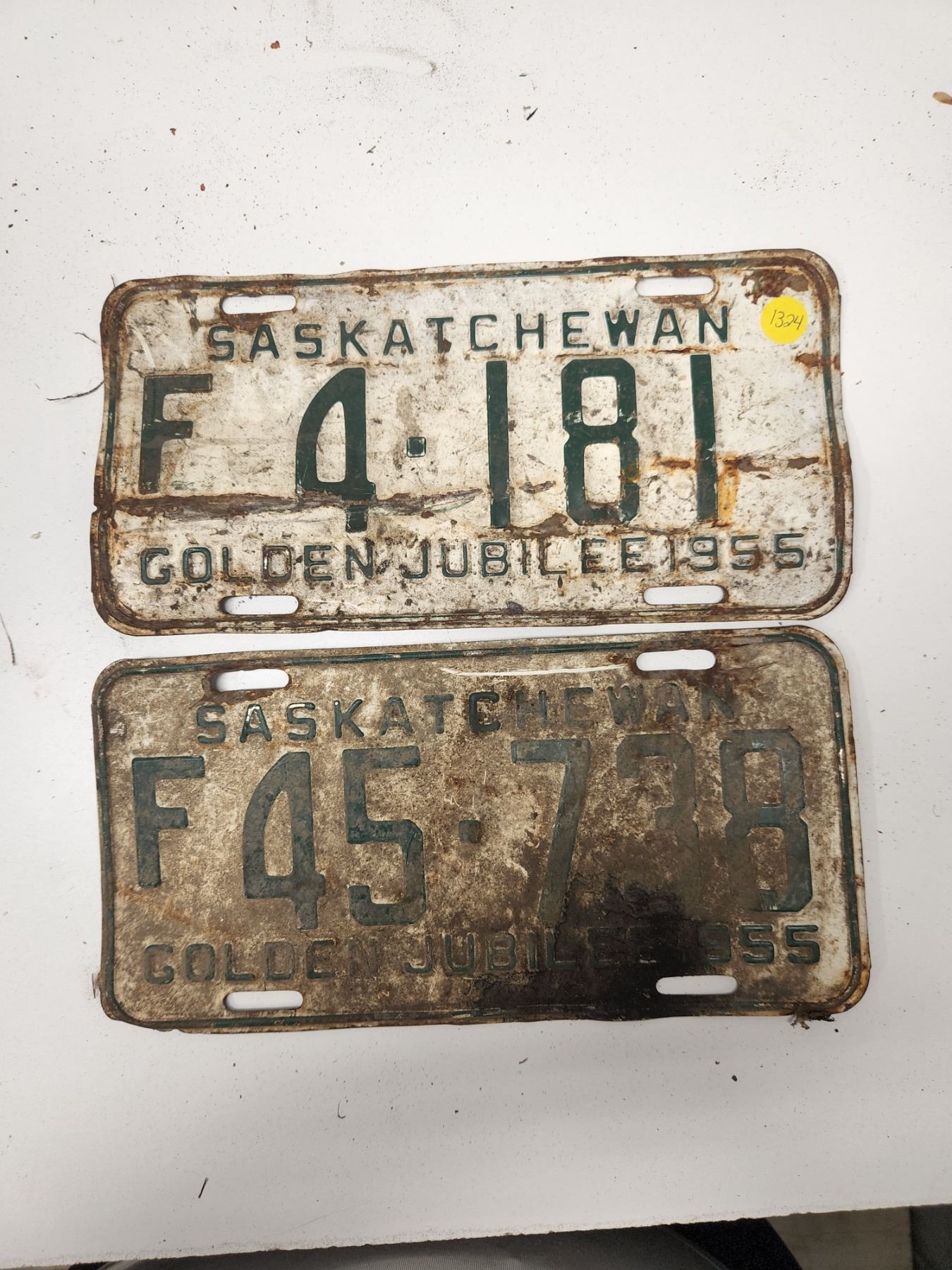 (2)Plates: F 4-181 Golden Jubilee 1955-Sask, F45-738 Golden Jubilee 1955-Sask