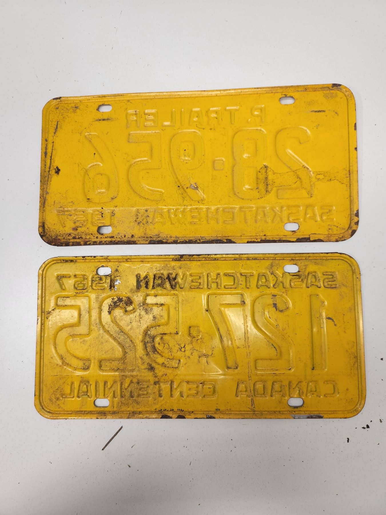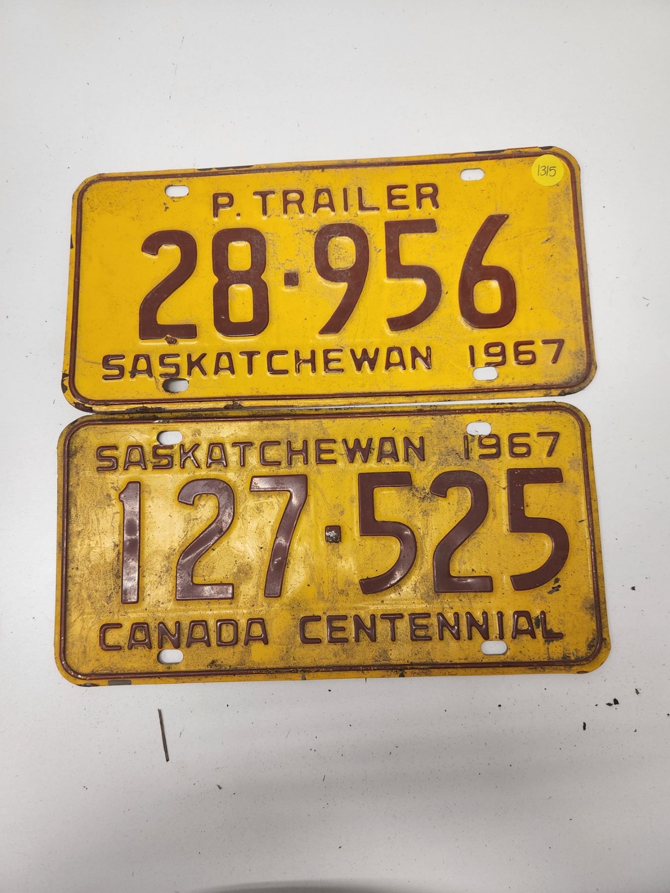 (2)Plates: P.Trailer 28-956 1967-Sask, Canada Centenial 127-525 1967-Sask