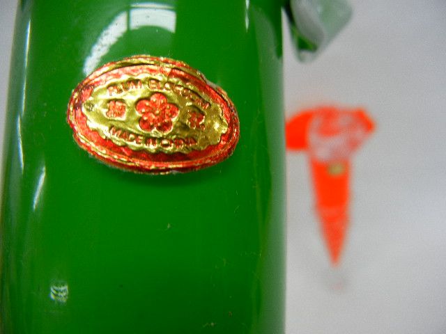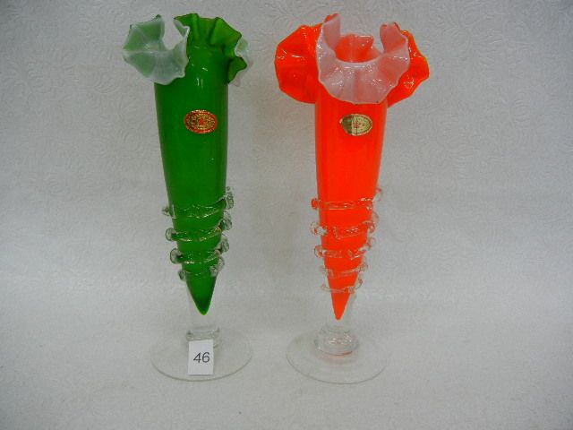 2 Plum Blossom Brand Hand Blown Vases, 1 Green and 1 Orange