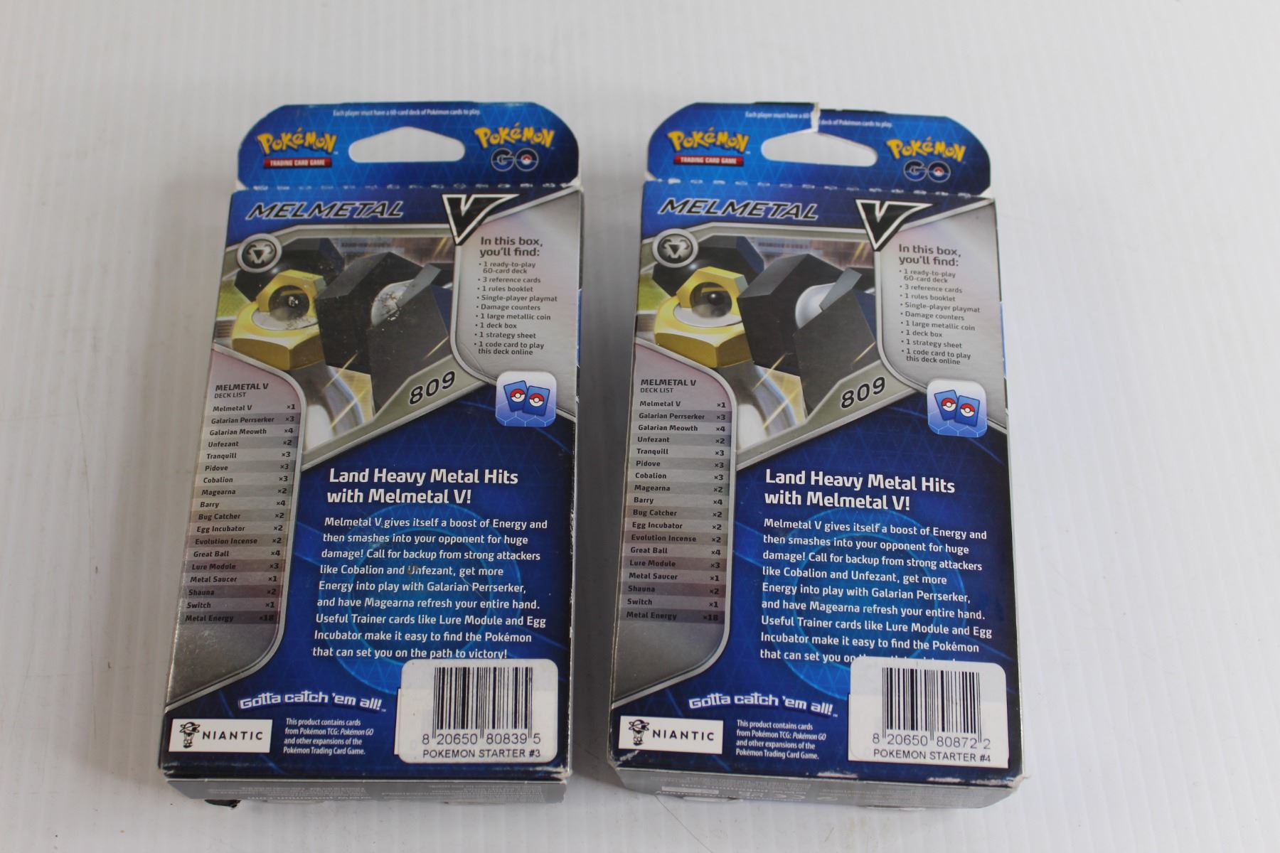(2) Pokemon Go Melmetal Boxes - Each Includes 60-Card Play Deck, (3) Reference Cards, Rule Book, Playmat, Damage Counters, Metallic Coin, Deck Box, Strategy Sheet, Code Card - NIB
