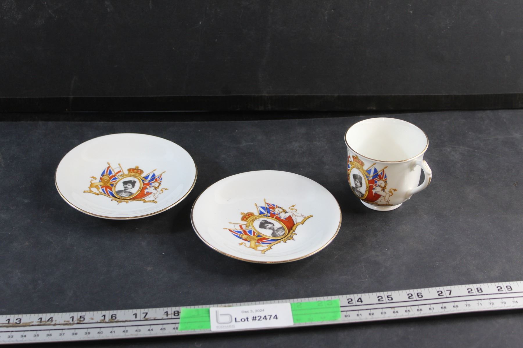 (2) Porcelain China Queen Elizabeth II Coronation Saucers and Tea Cup