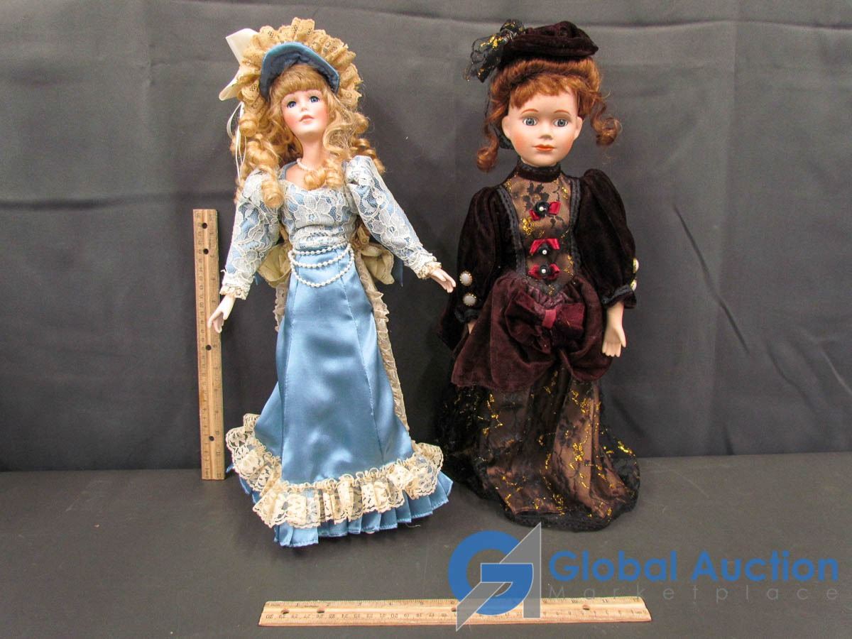 (2) Porcelain Dolls On Stands