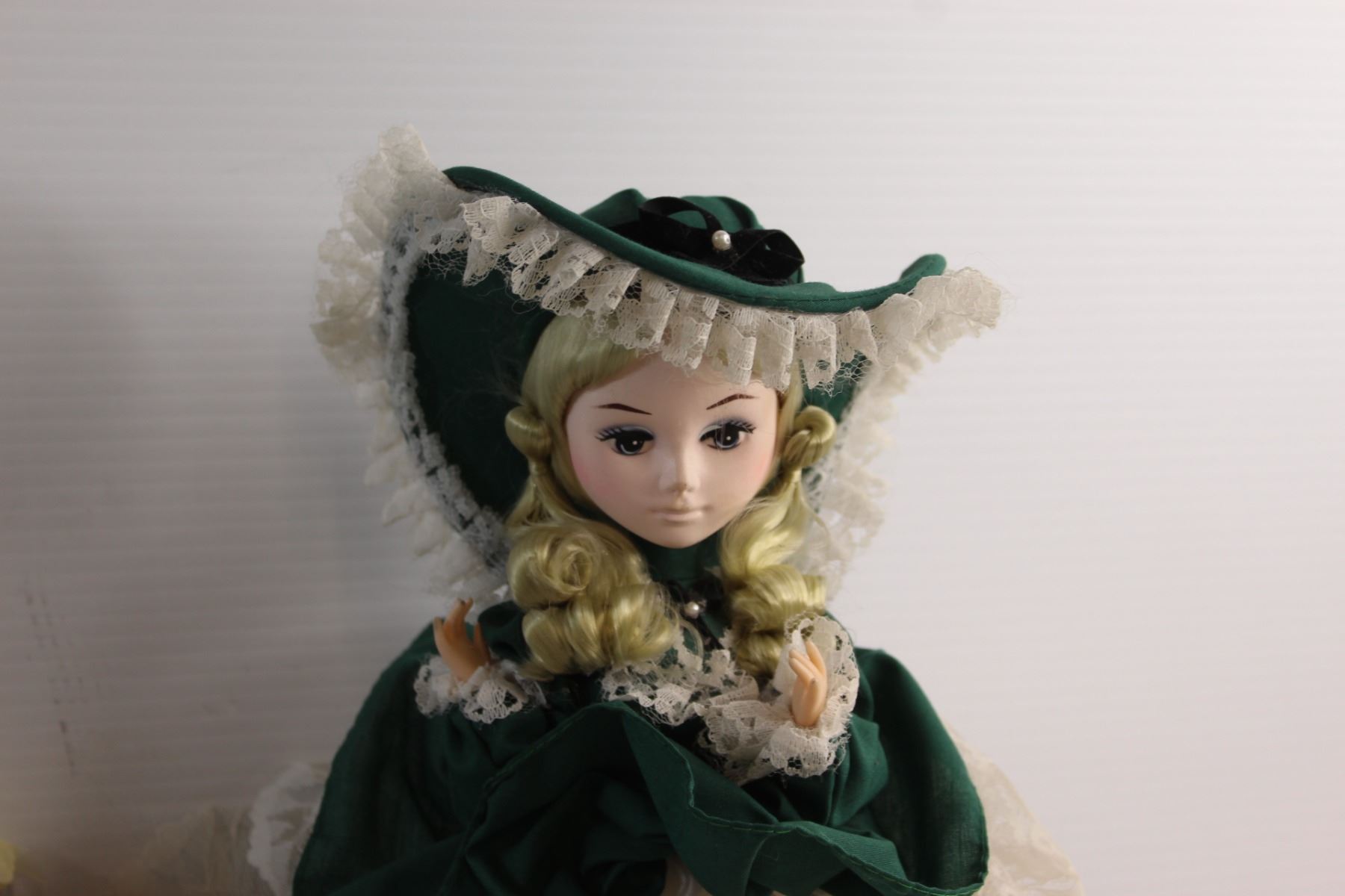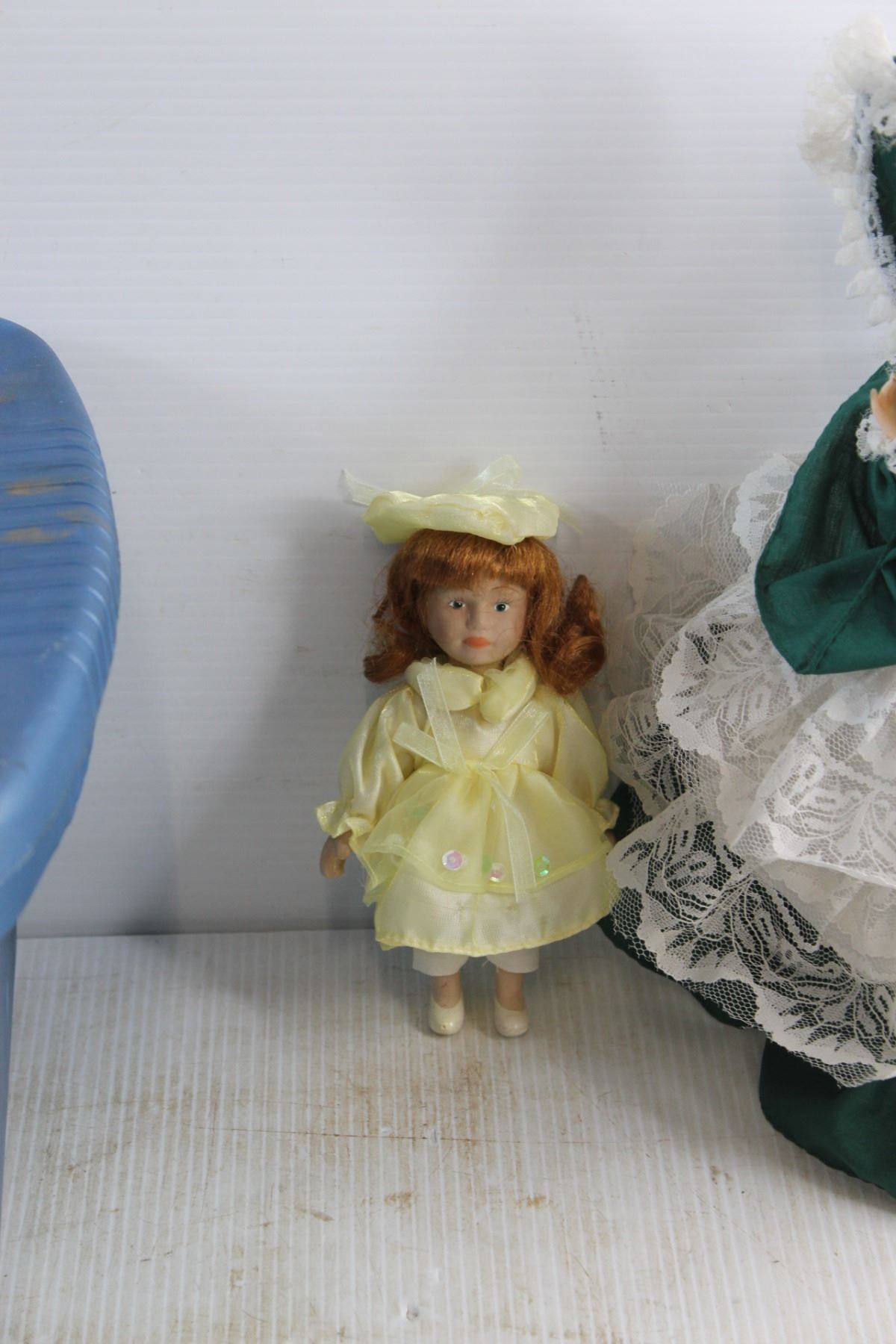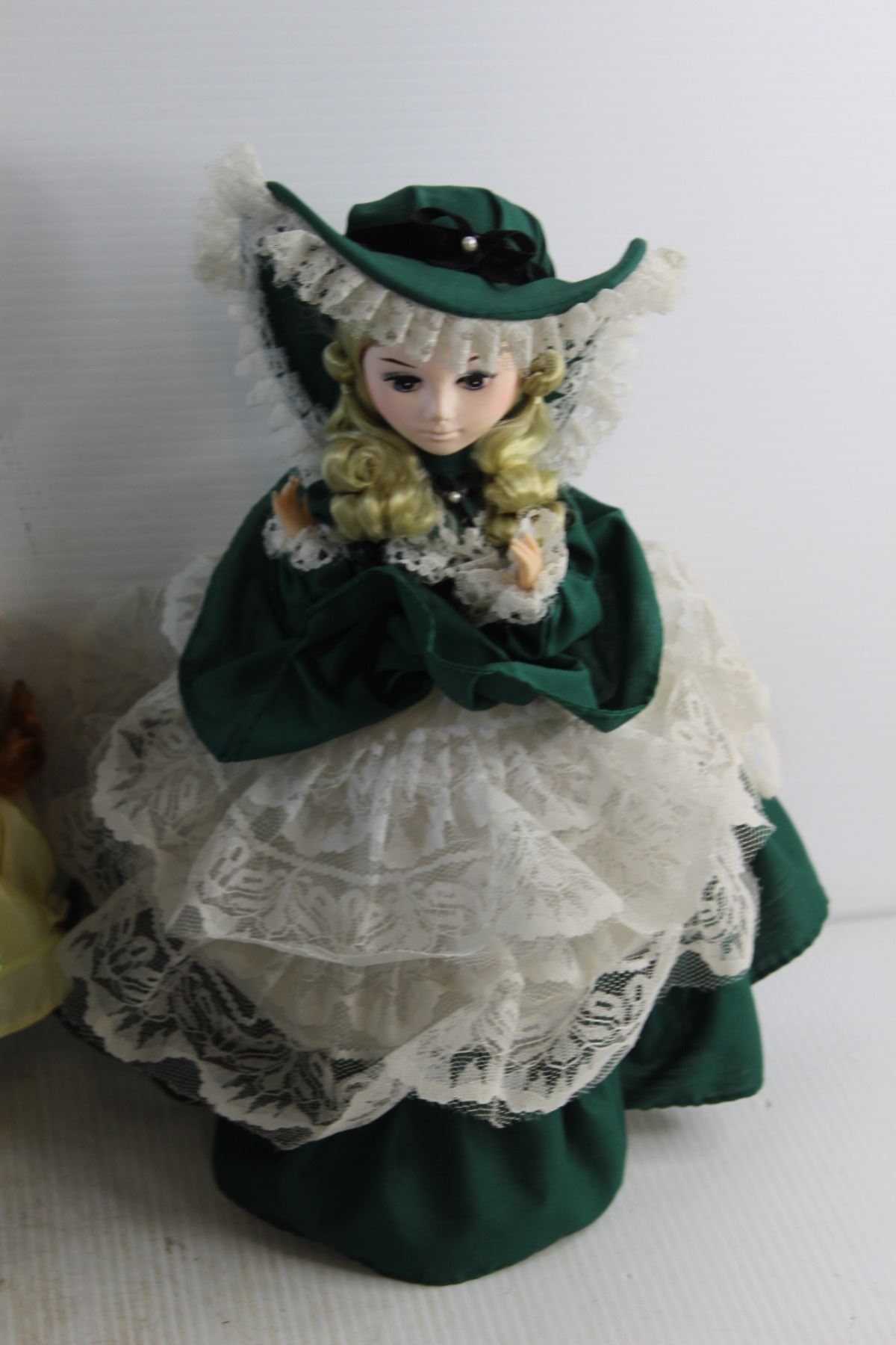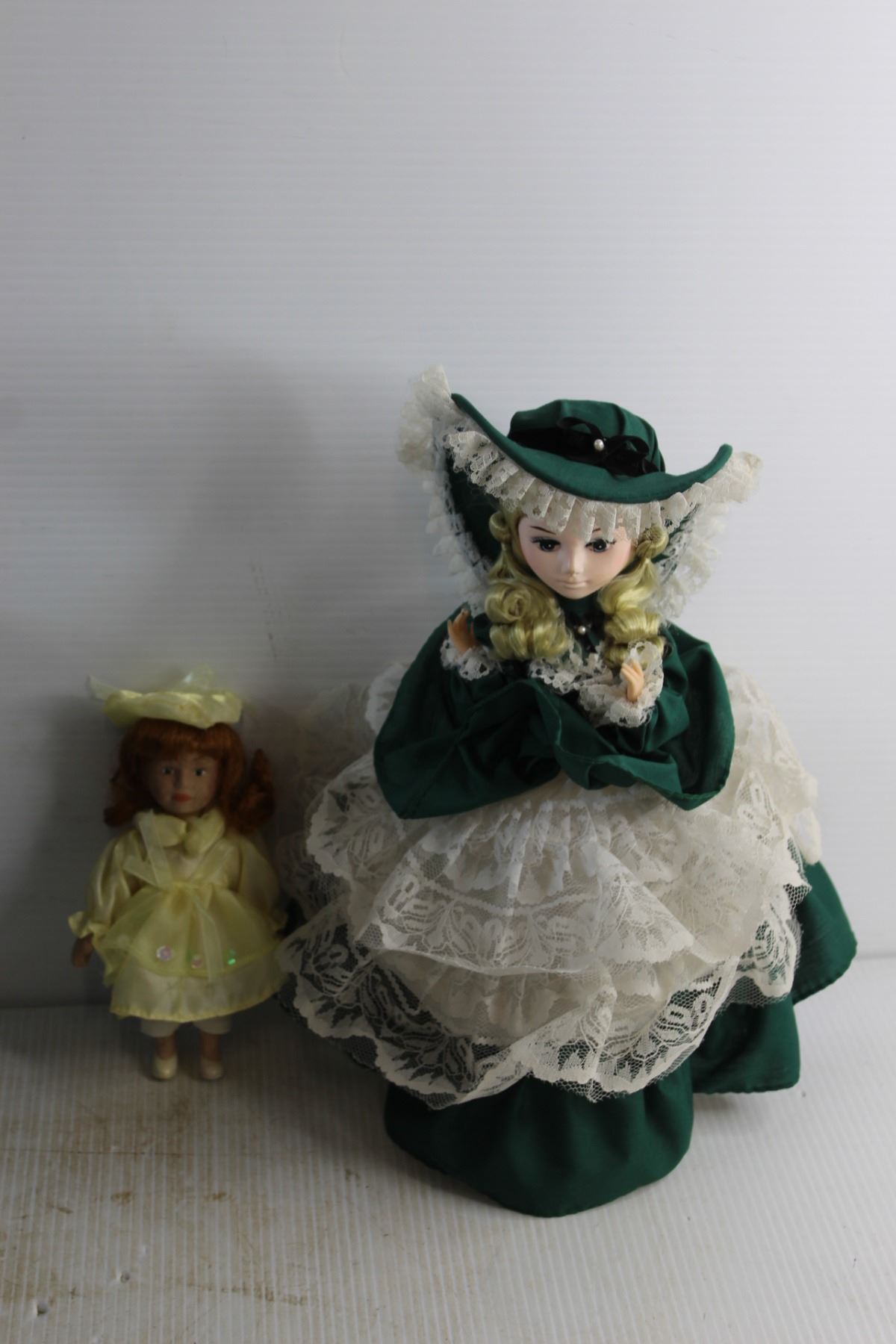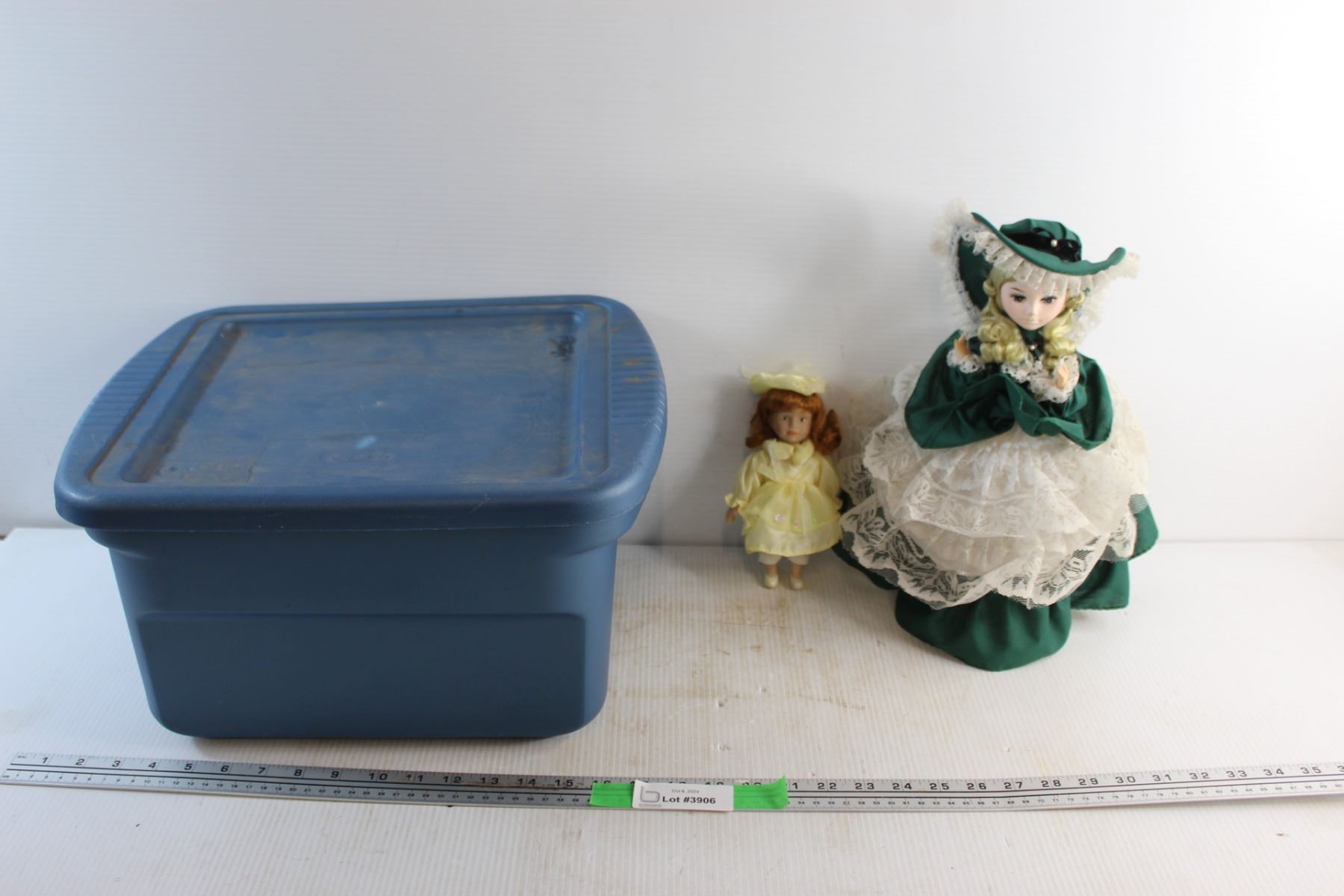 (2) Porcelain Dolls and Sterlite Tote 16'' x 9''