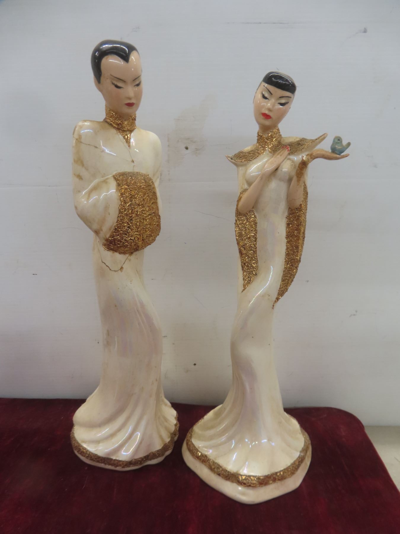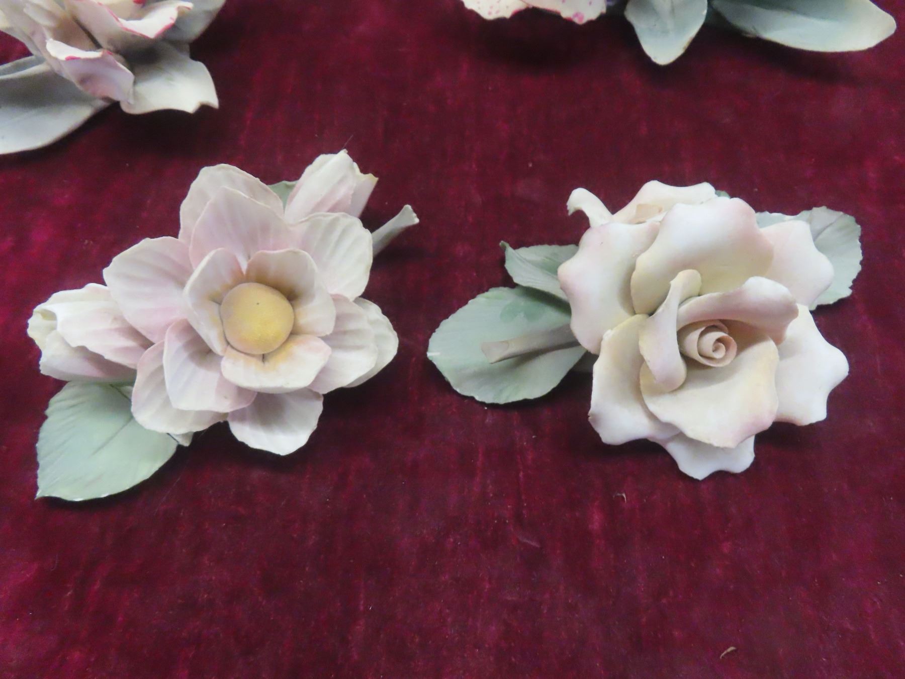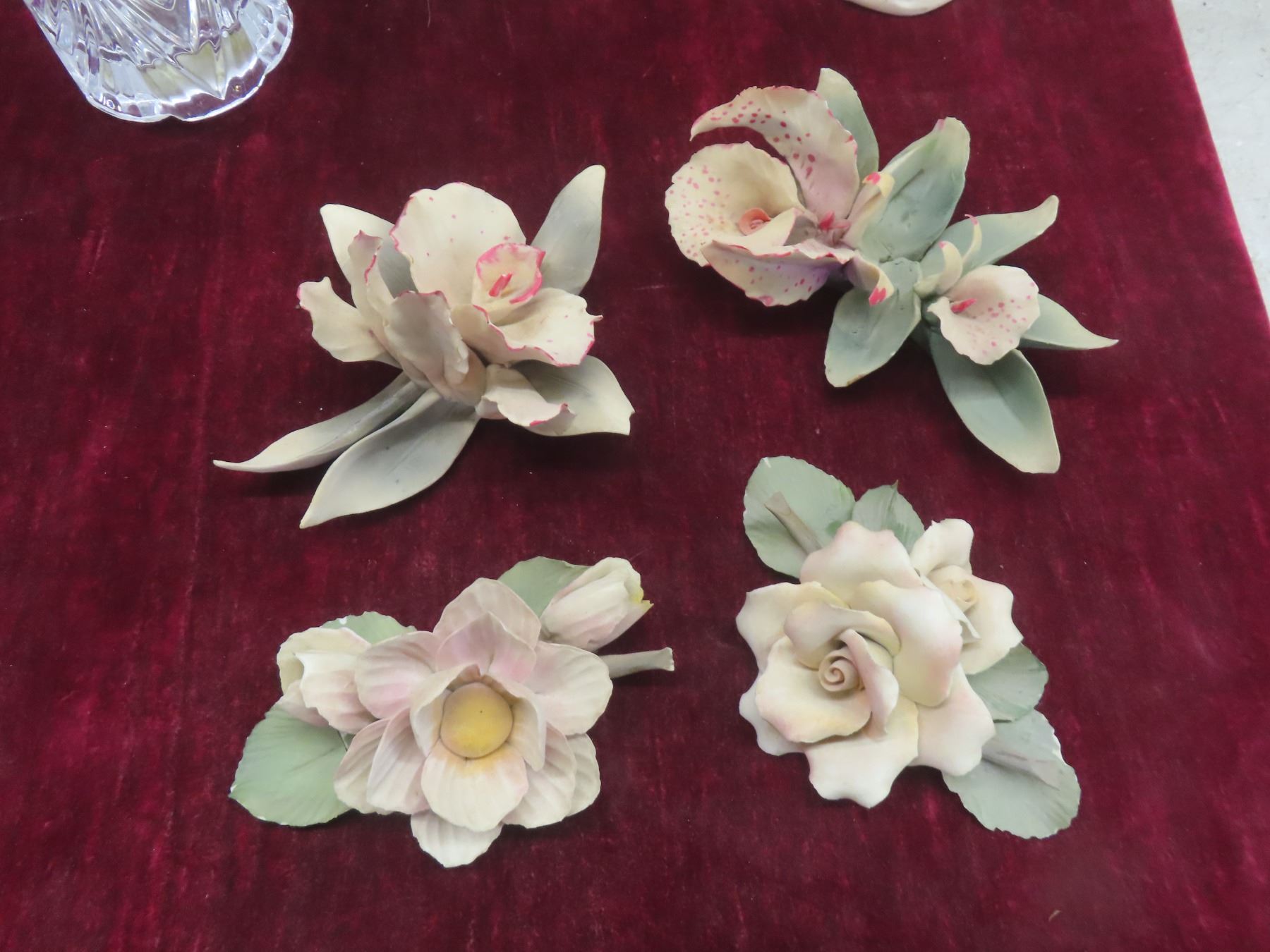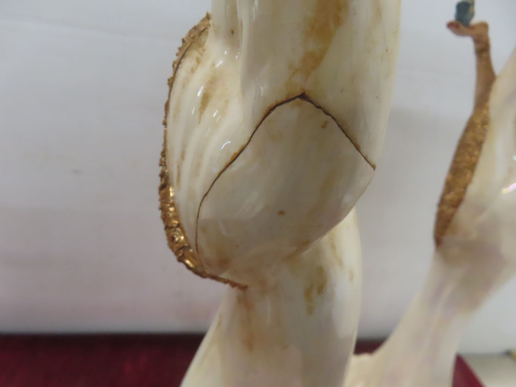 2 Porcelain Figurines (19" Tall, One Damaged), Vase, and 4 Ceramic Orchids by Capodimonte (One Damaged Piece)