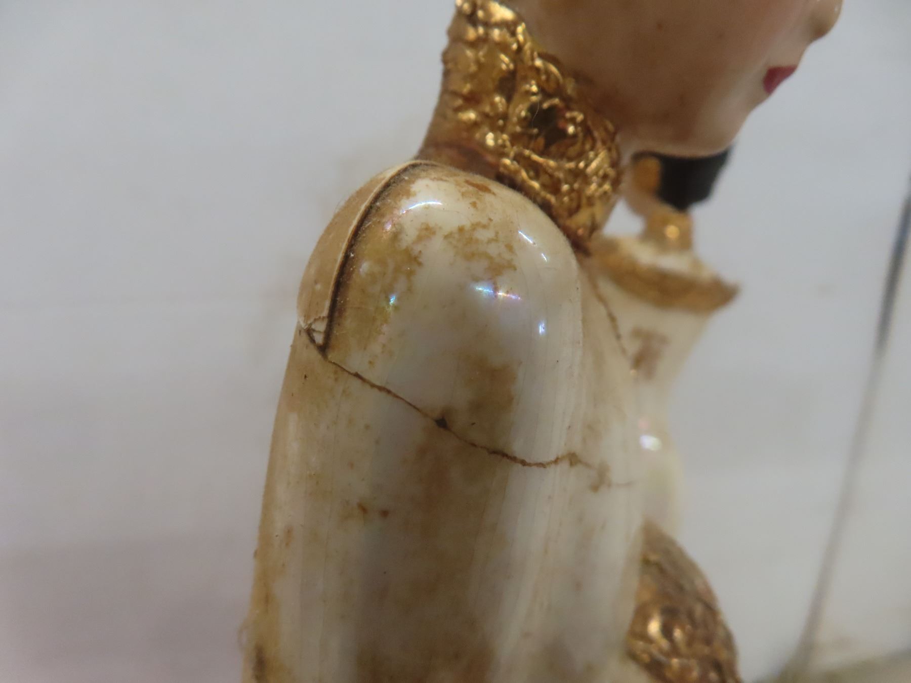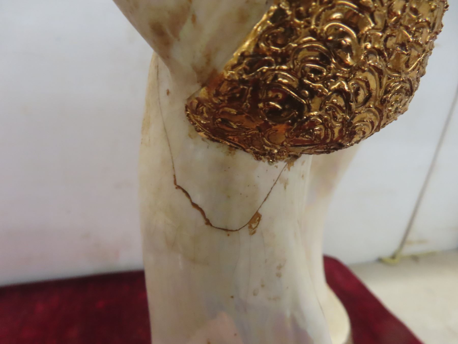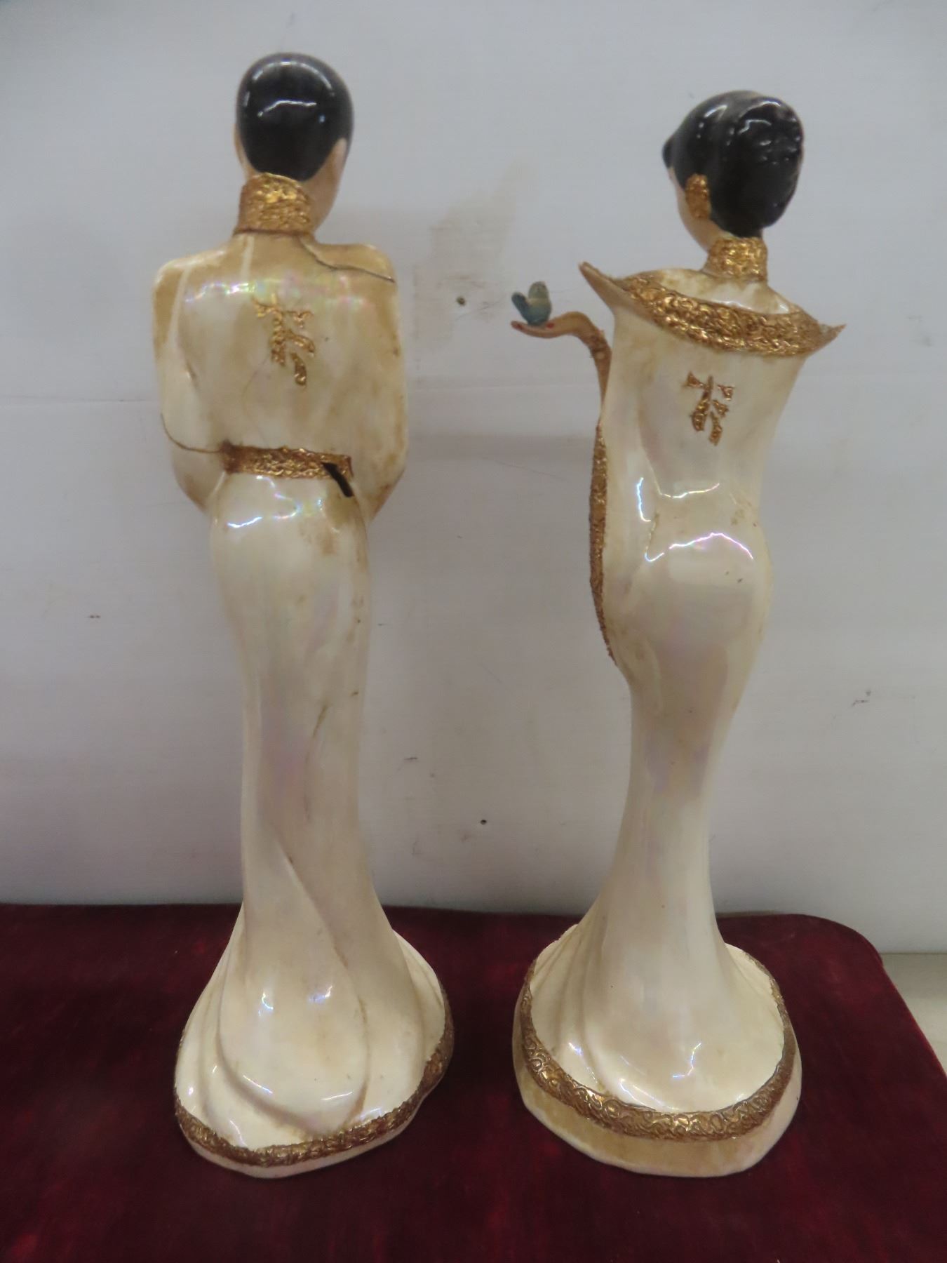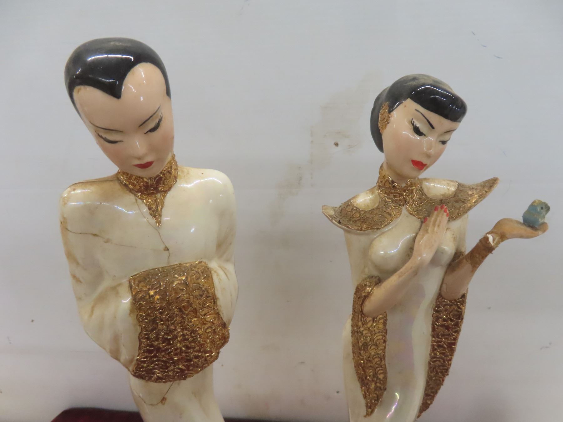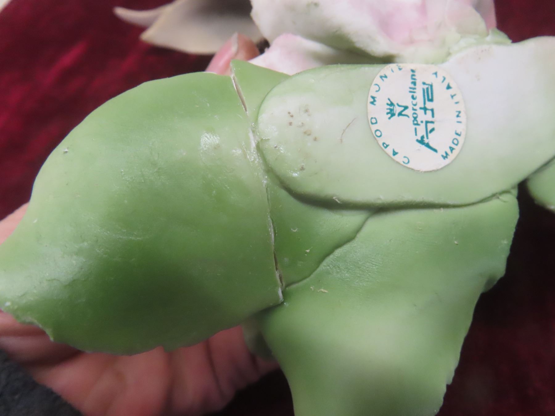 2 Porcelain Figurines (19" Tall, One Damaged), Vase, and 4 Ceramic Orchids by Capodimonte (One Damaged Piece)