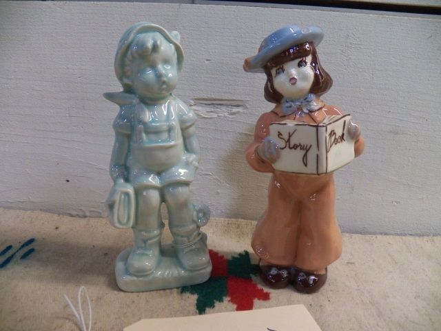 circa 40's-50's Turquoise Little Boy Blue unmarked but very nice approx 7 1/2" tall. & Story Book Figurine Reading Simple Simon marked on bottom