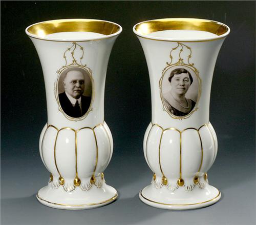 2 Porzellanvasen mit Original-Photos Niederländische Photo-Keramik, Höhe: 22 cm. - Dekorativ!