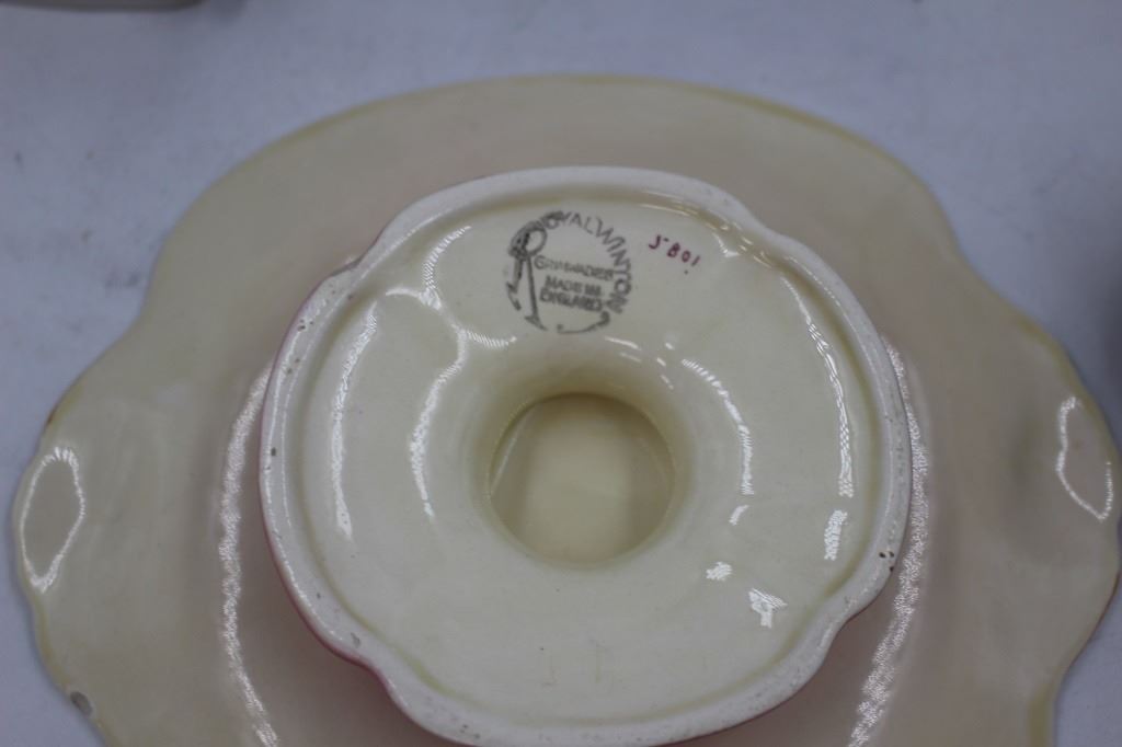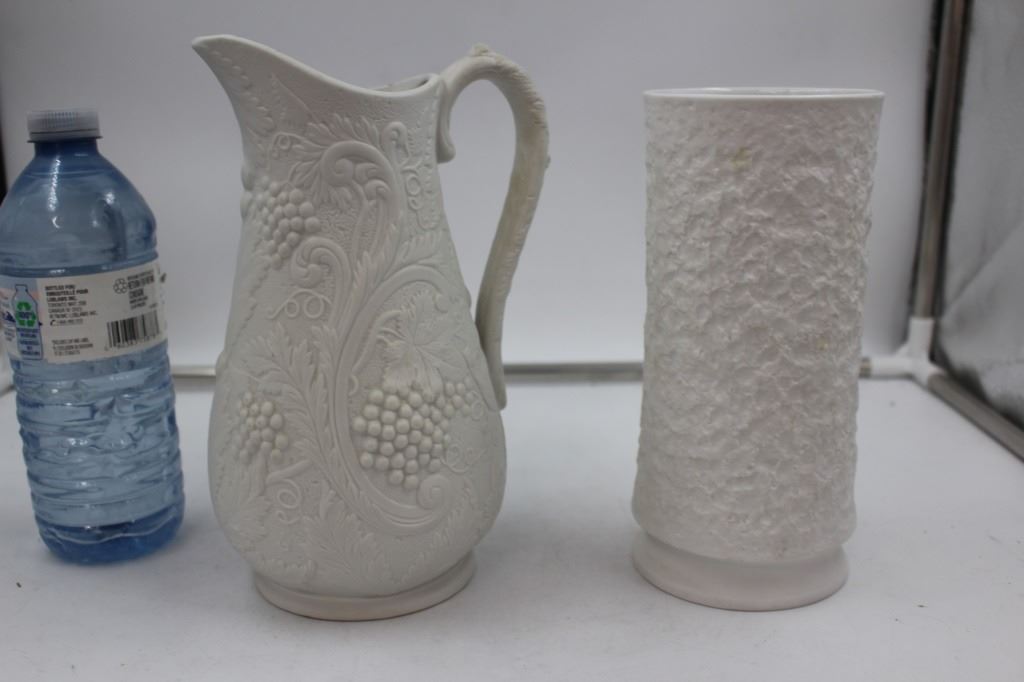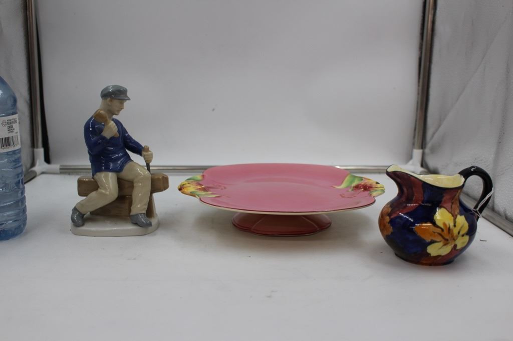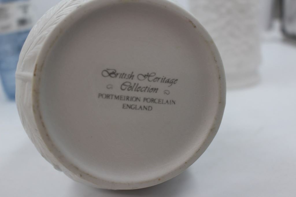 Vases are "British Heritage Collection" mfg. by Portmeirion Porcelain England. Footed Platter is Royal Wilton Pitcher is Hak Tunstall