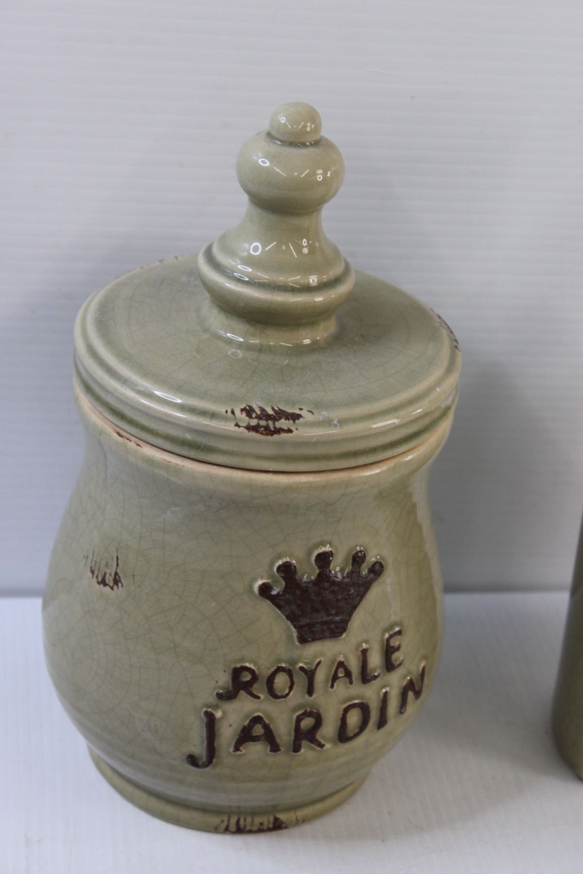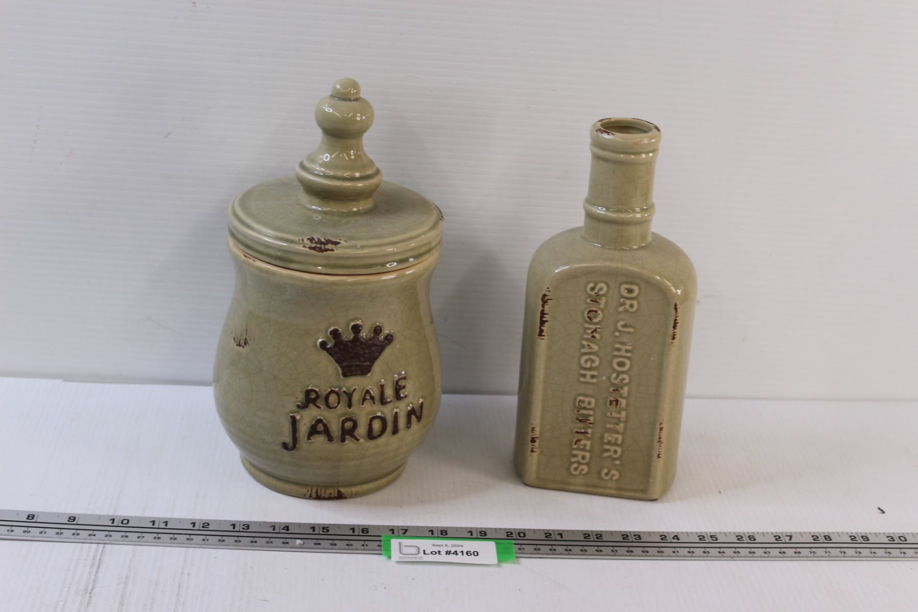 (2) Pottery Containers: Jar - 11" x 6" & Vase - 11" Tall