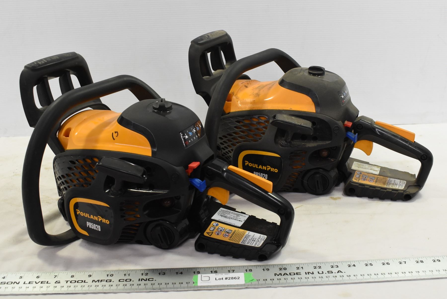 2 PoulanPro PR5020 Chainsaws – No Blade, Untested