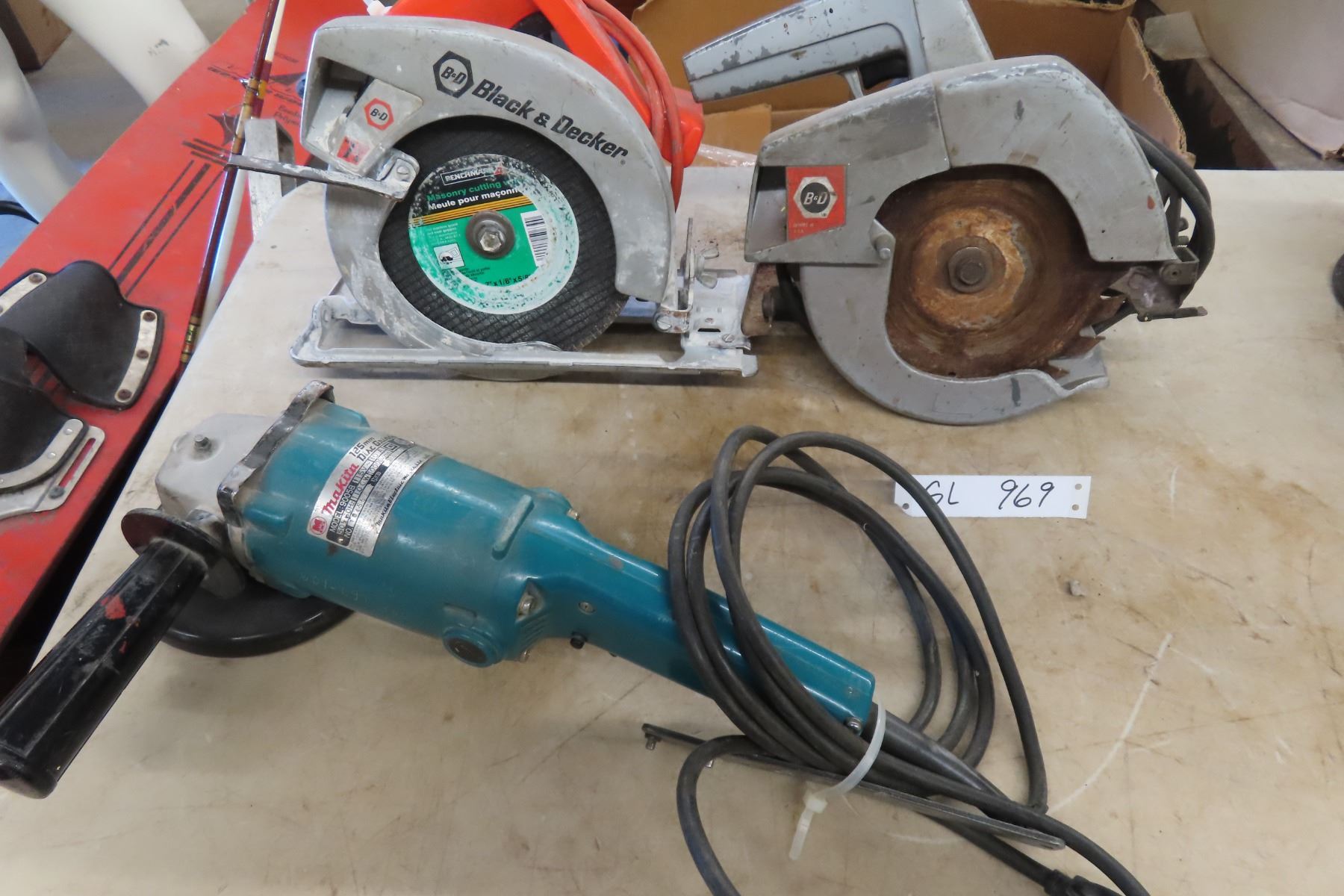 2 Power Black and Decker Circular Saws & Makita Angle Grinder