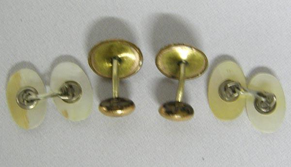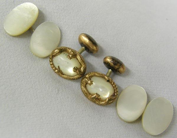 2 Pr Antique Gold Lizard MOP Cufflinks, measures approx. .75'' long. SHI $15.
