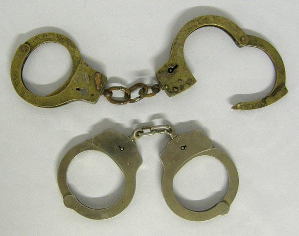 2 Pr Peerless & Takeeda Handcuffs (no keys), longest pair measures approx. 10'' x 2 7/8''. SHI $15.