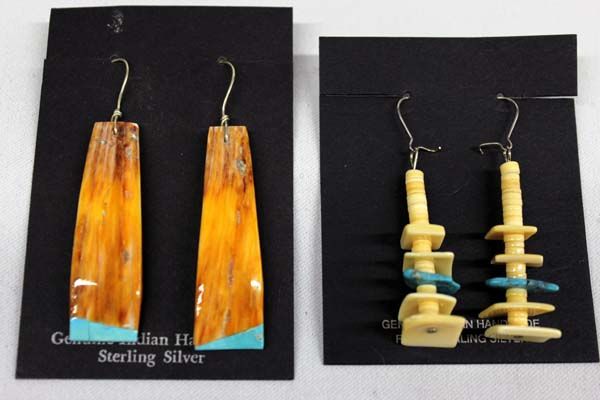 2 Pr Santo Domingo Shell Pierced Earrings. Longest earrings measures approx. 2''L x .25LW & are made from Red Shell & Turqoise. The smaller pr of earrings measures 2.50''L and are made of Pink Shell & Turquoise.