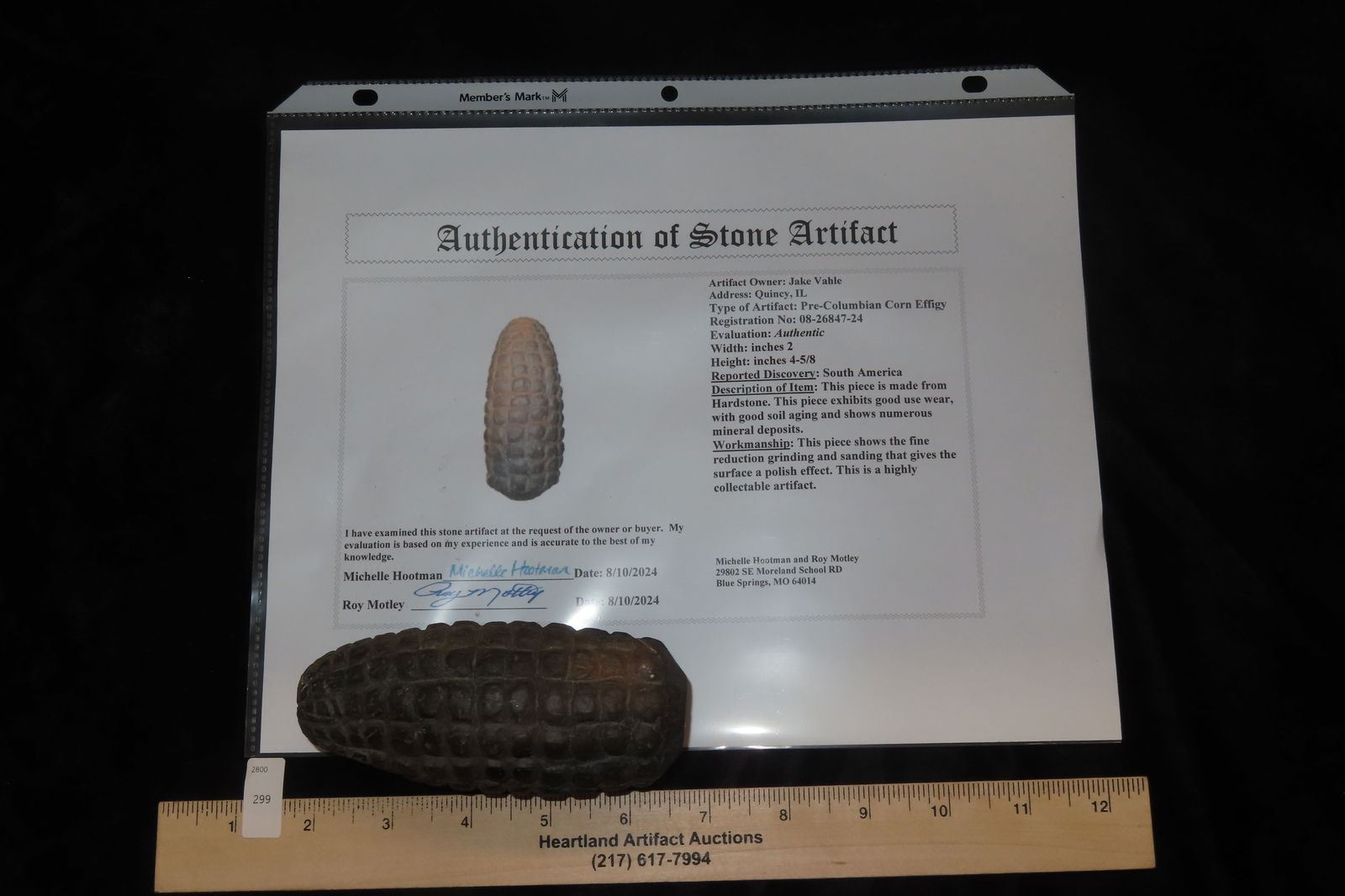 b) At the time of payment the buyer must notify Heartland Artifact Auctions INC of their intent to send the item or items to one of the following authenticators; Jerry Dickey, Maury Meadows, Sam Johnson, Roy Motley and Ken Partain. This notification must come via email to info@heartlandartifacts.com.