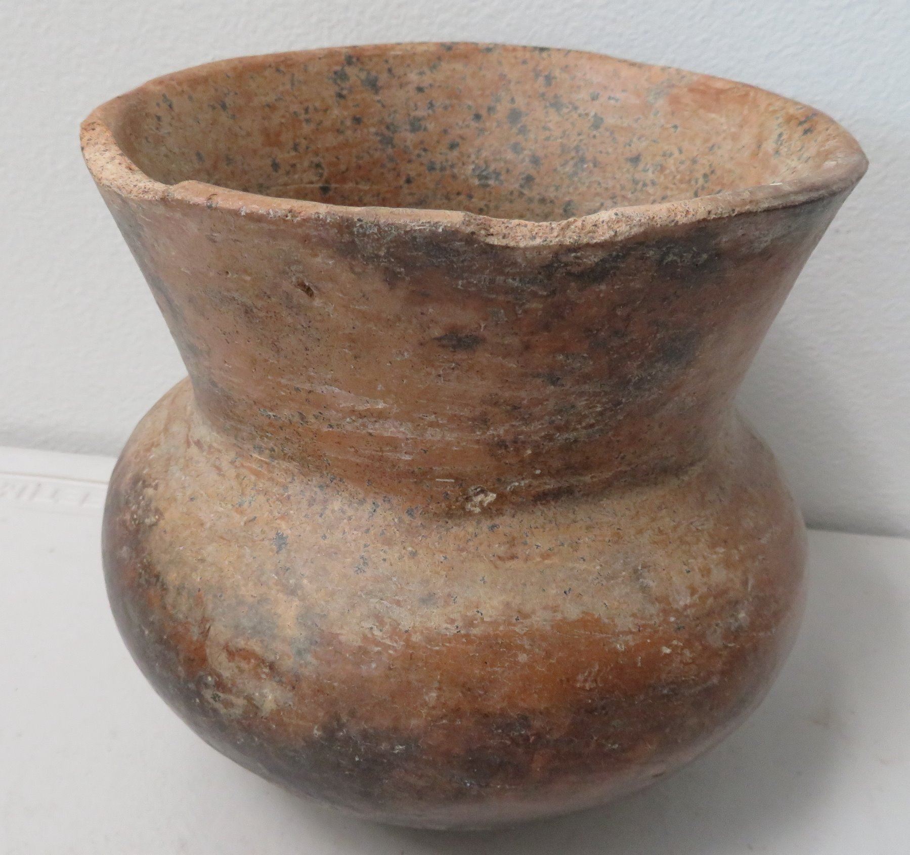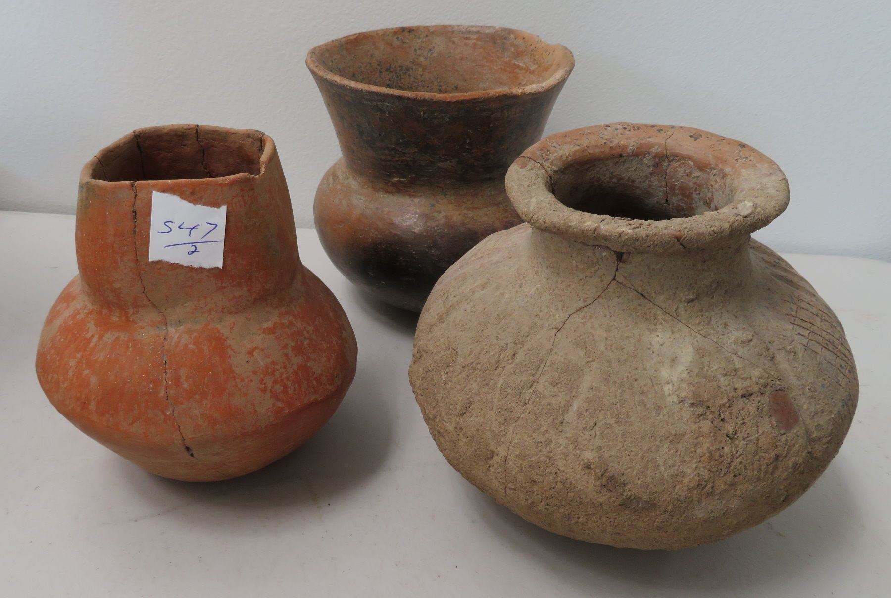 2 Pre-Columbian Ollas, pre-Columbian items. Made of clay and paint, the largest measures 7". Colima, Mexico. Condition: 2 broken and glued, see images. Shipping: $42.50 w/insurance and signature, double-boxed, due to size and weight.