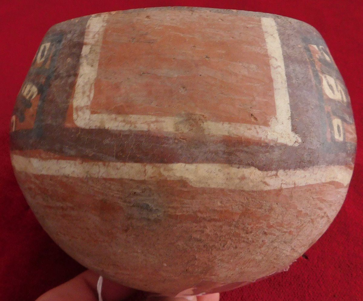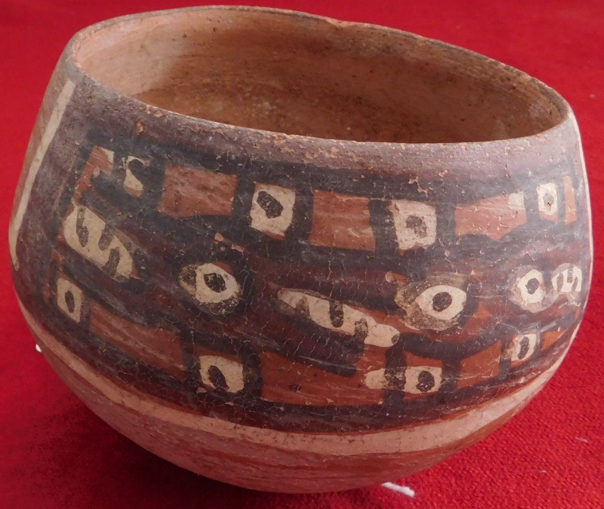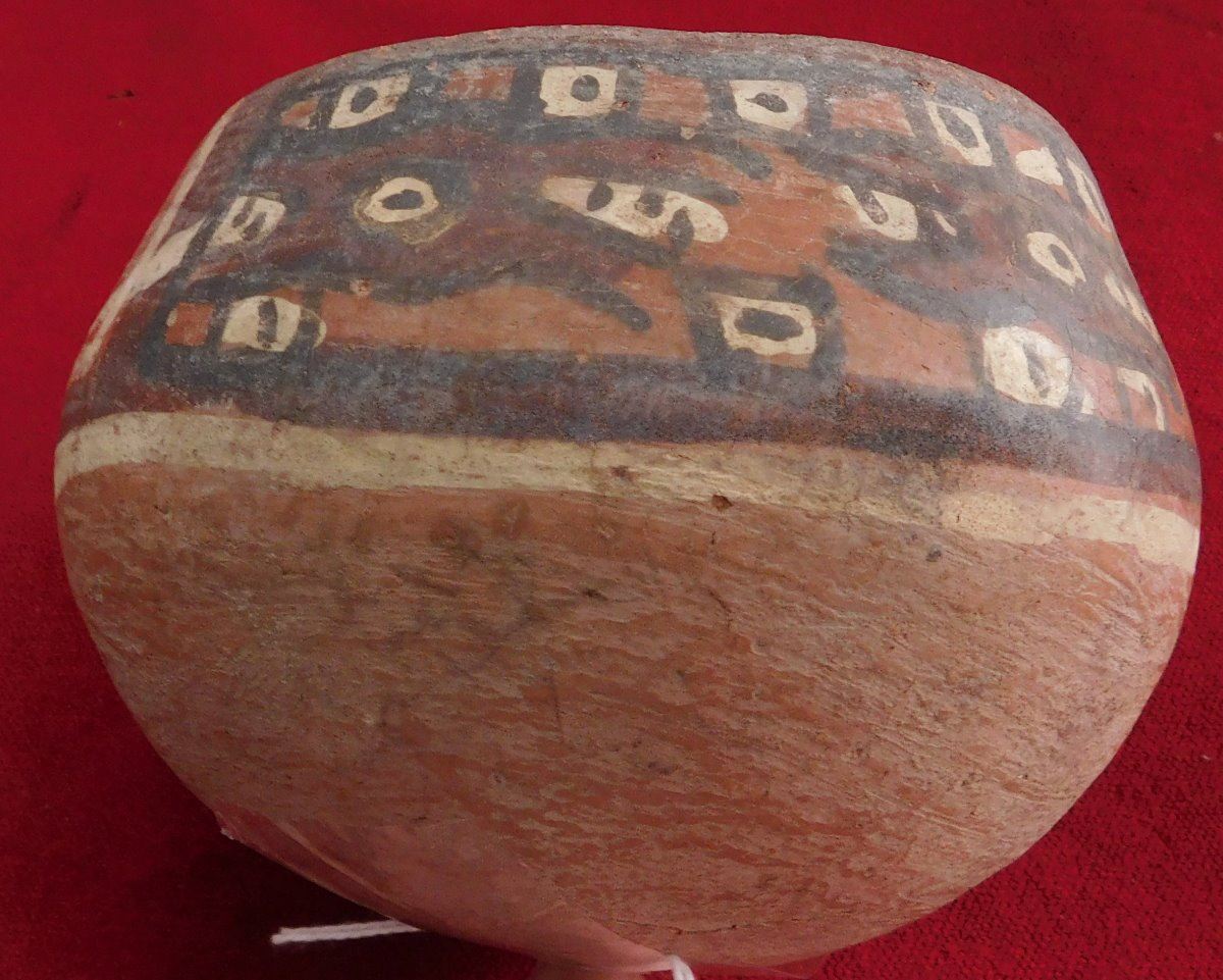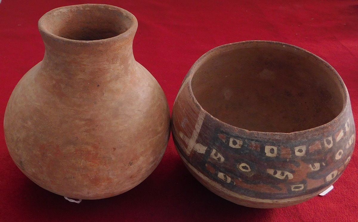2 Pre-Columbian Pots, c. 1500 yrs B.P. Made of clay and paint, the items are 4" x 5" and 5" x 3". South America. One has polychrome paint! From an old, 1960s California collection. Condition: As found, see images. Shipping: $30.00 w/insurance and signature, double-boxed.