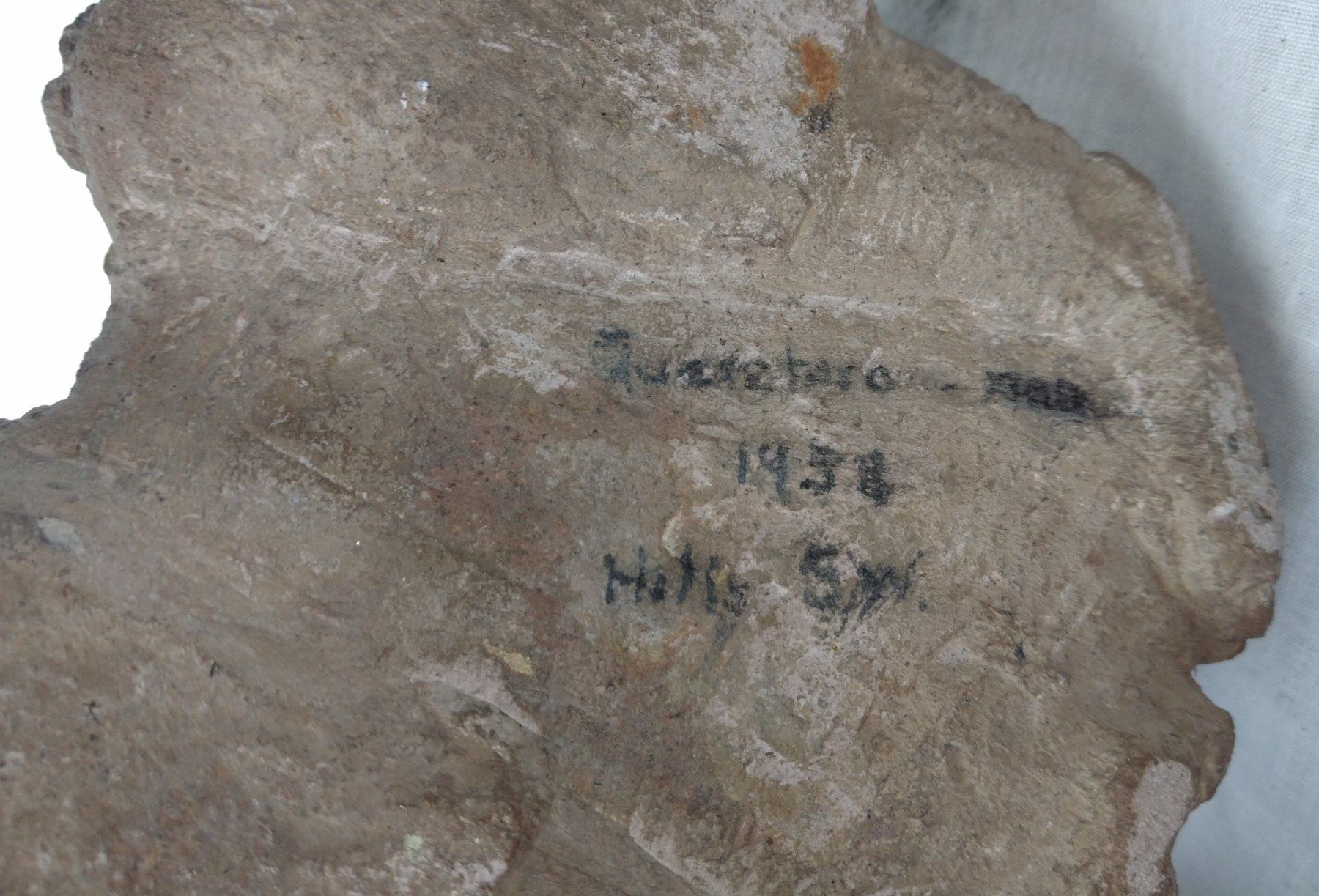 2 Pre-Columbian-style Figures, c. 1930s. Made of sandstone and ceramic, the items measures 27" and 13". Veracruz, Mexico. Condition: Some chips and wear, see images. Shipping: $80.00 USA estimate only, due to size and heavy weight.