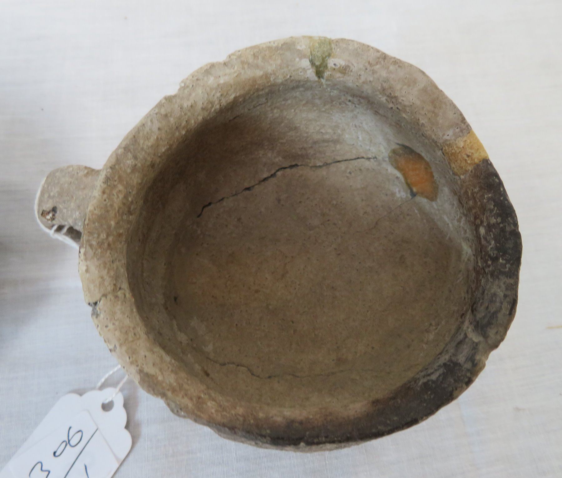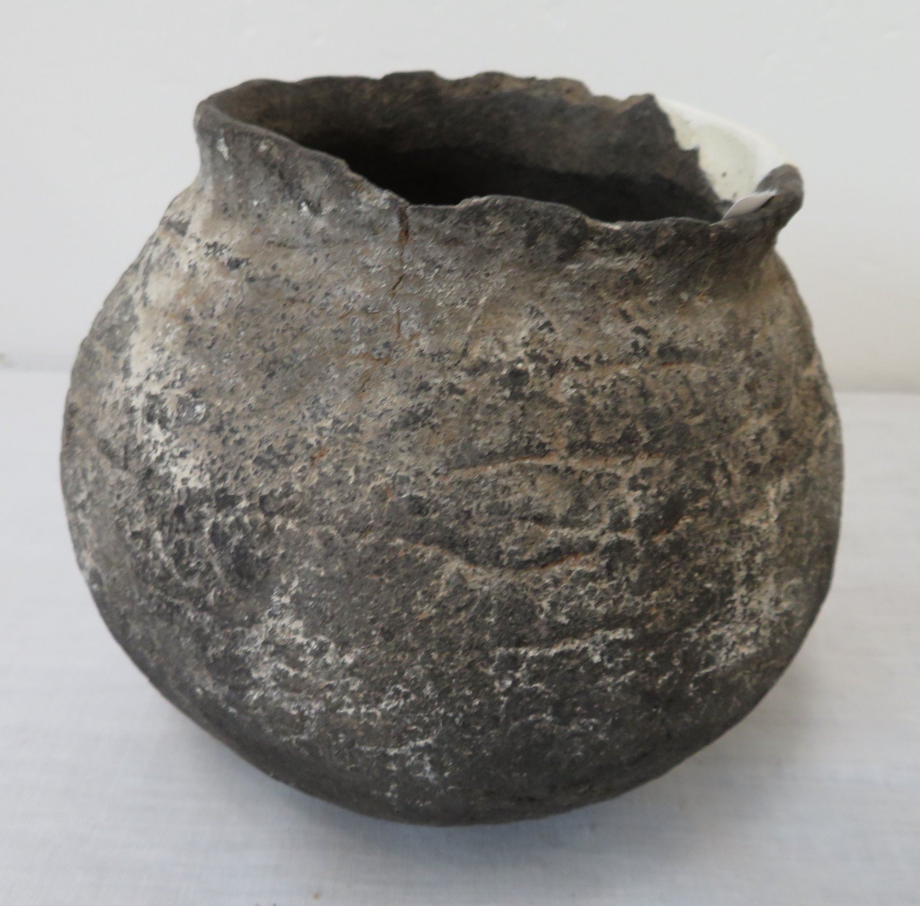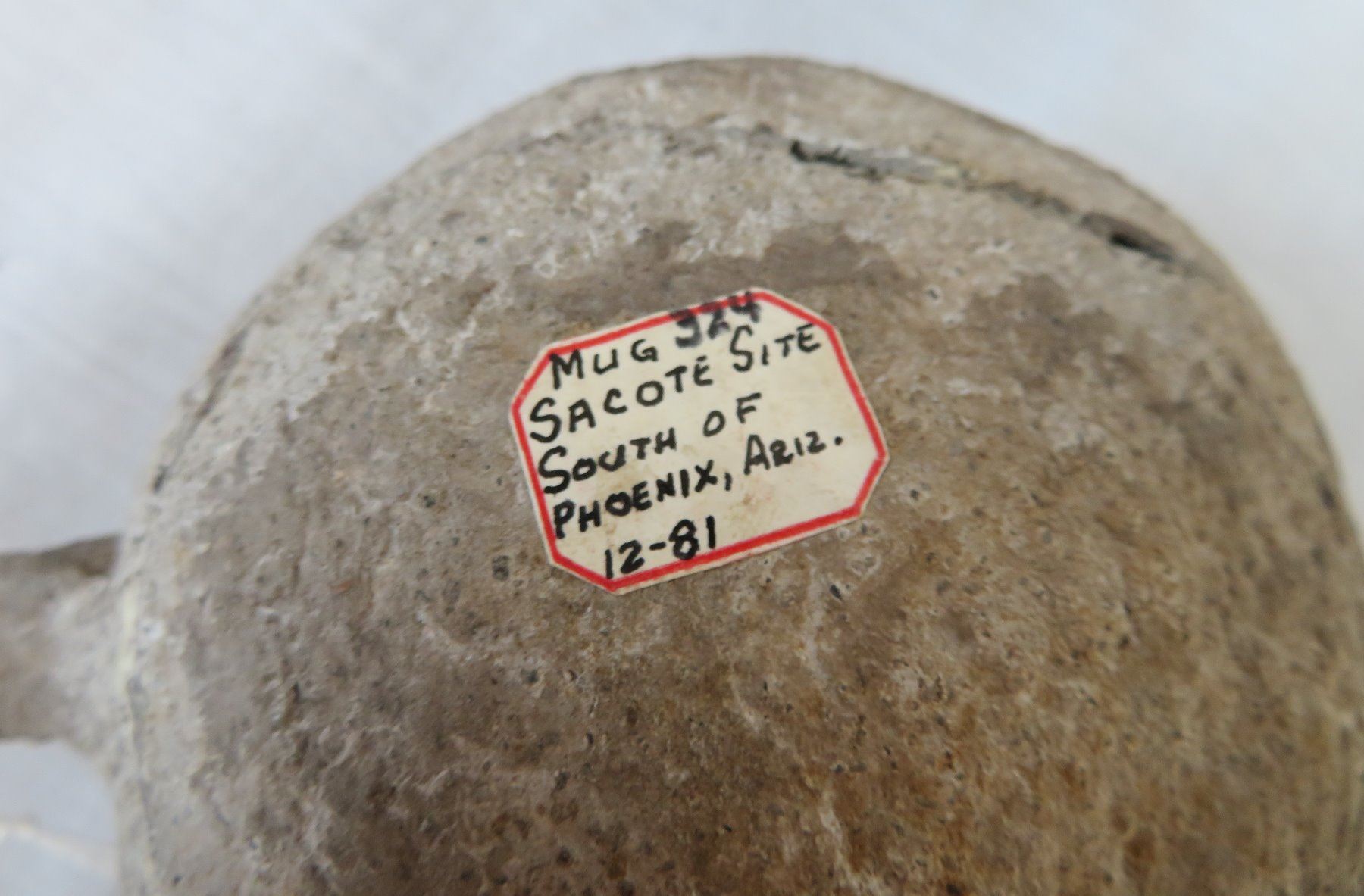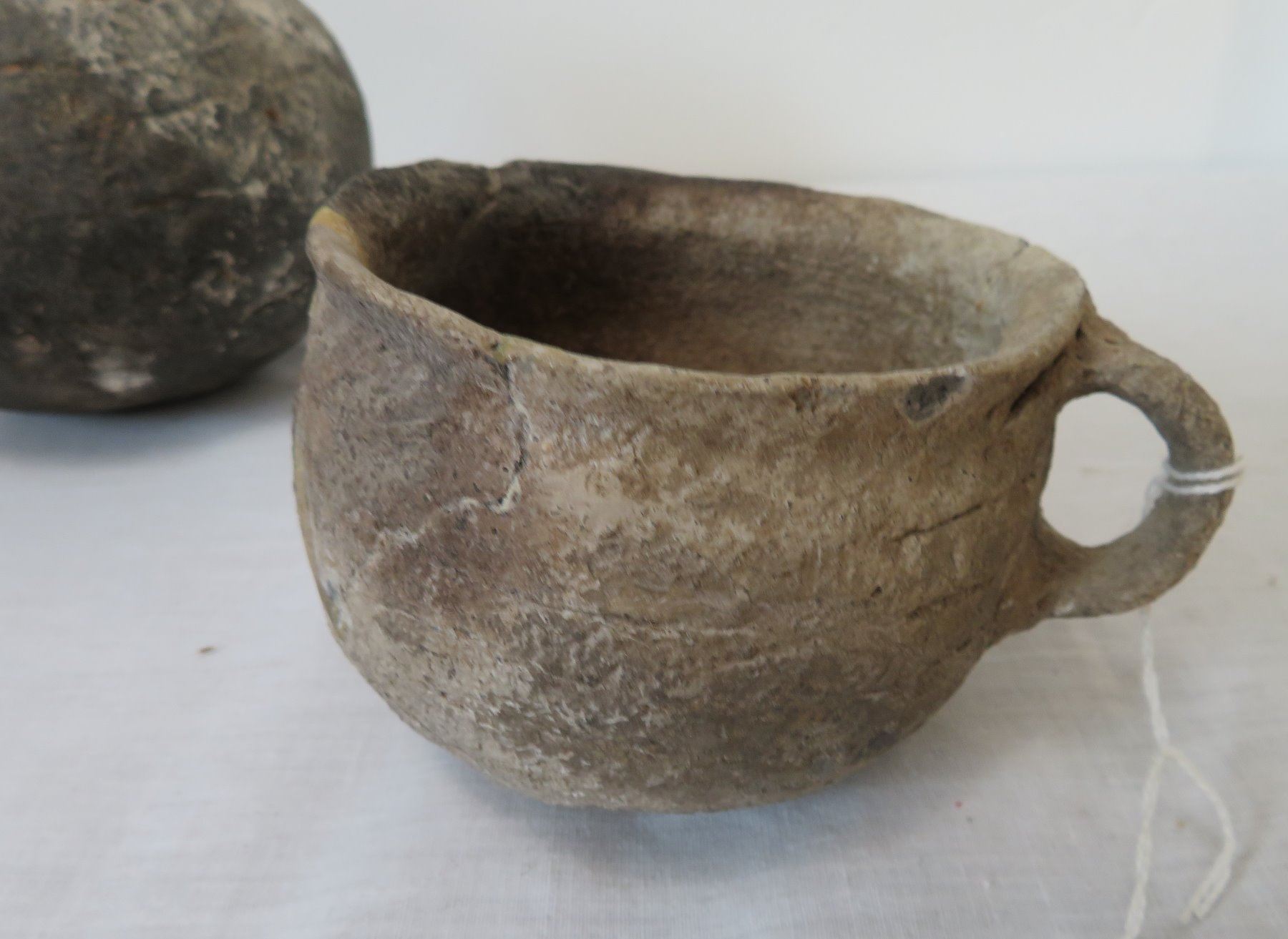 2 Pre-Historic Arizona Pots, c. 2000 years old. Made of clay, the largest item measures 5" x 4". Sacote site, Arizona. Good data on pots. Condition: 2% restoration, see images. Shipping: $30.00 w/insurance and signature, double-boxed, due to value.