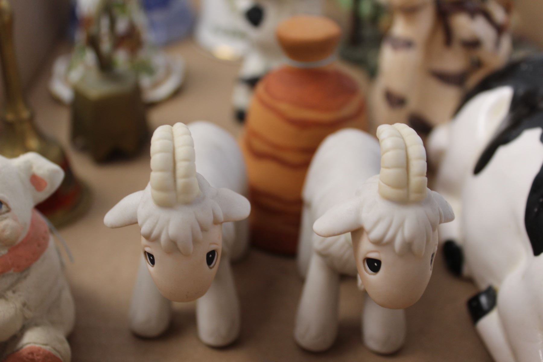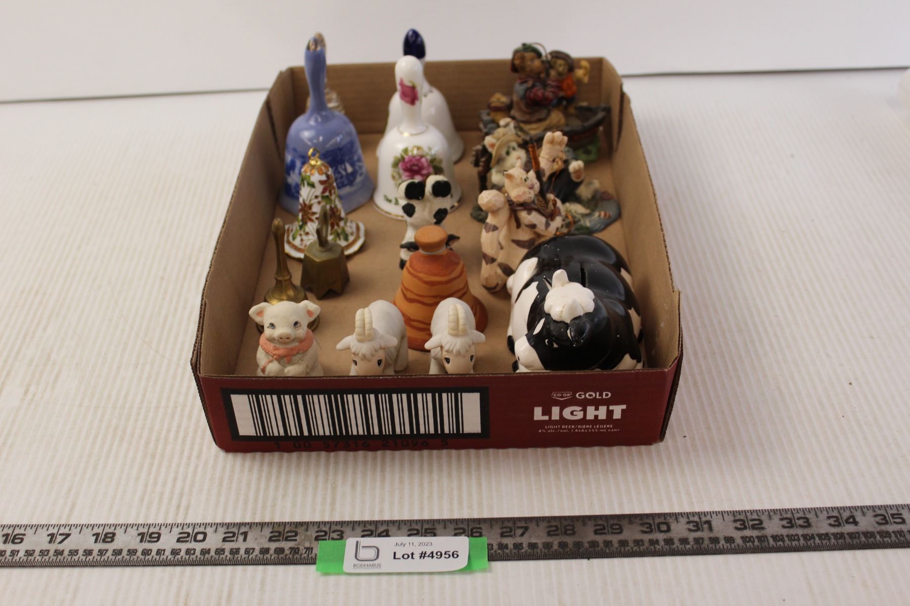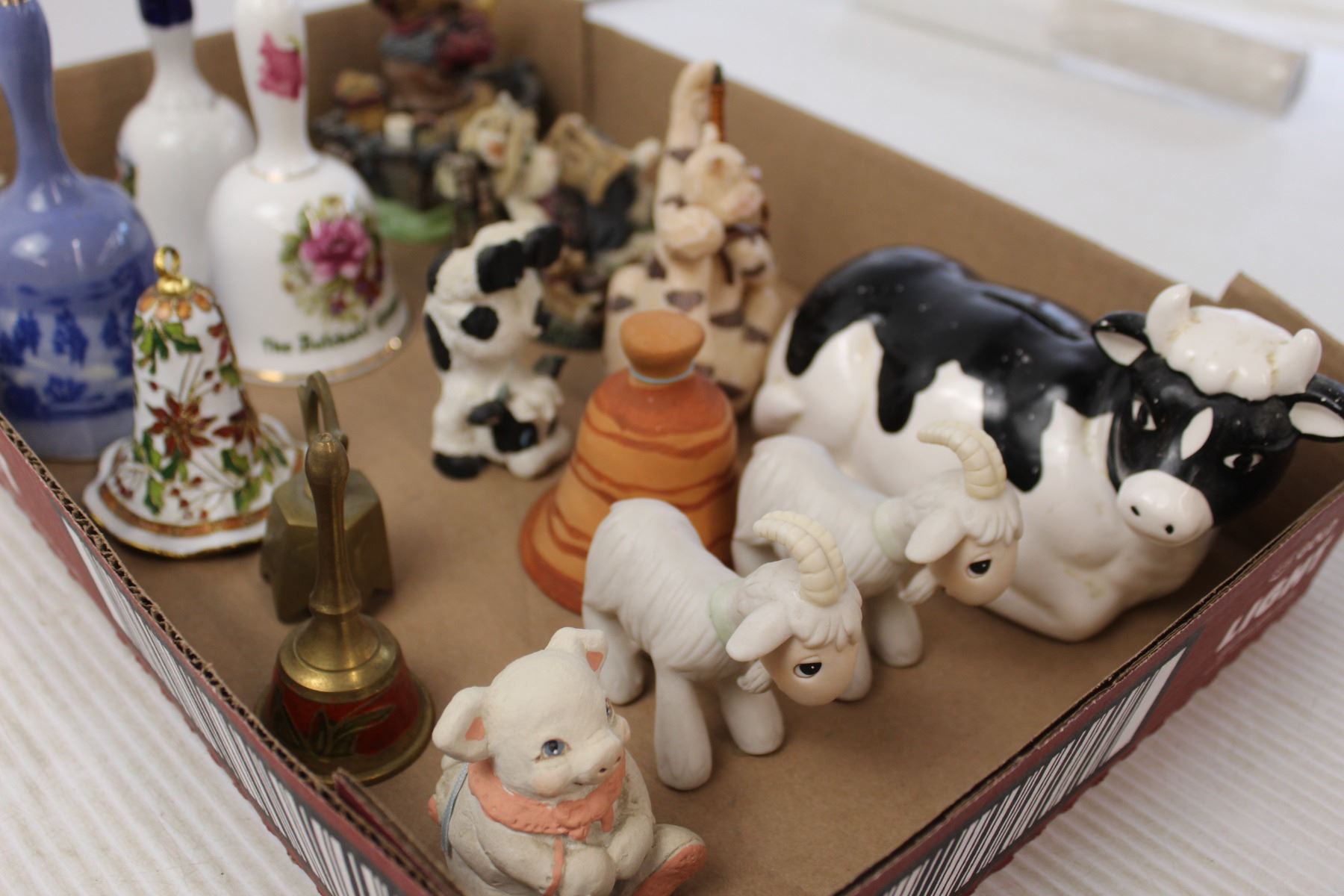(2) Precious Moments Goats Figurines, Misc. Figurines with Collection of Bells