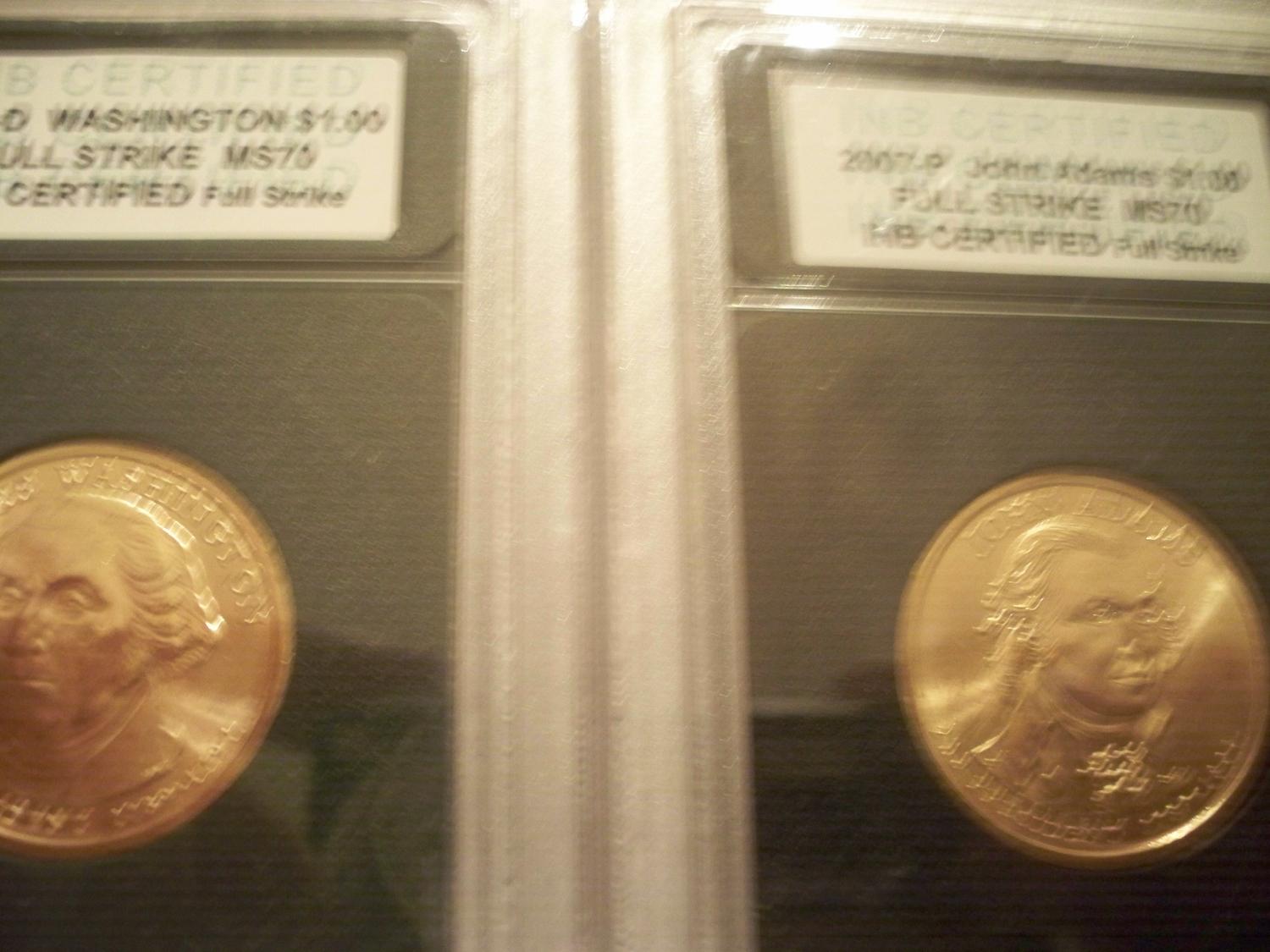 2 Presidential Gold Plated $1 MS-70 Coins