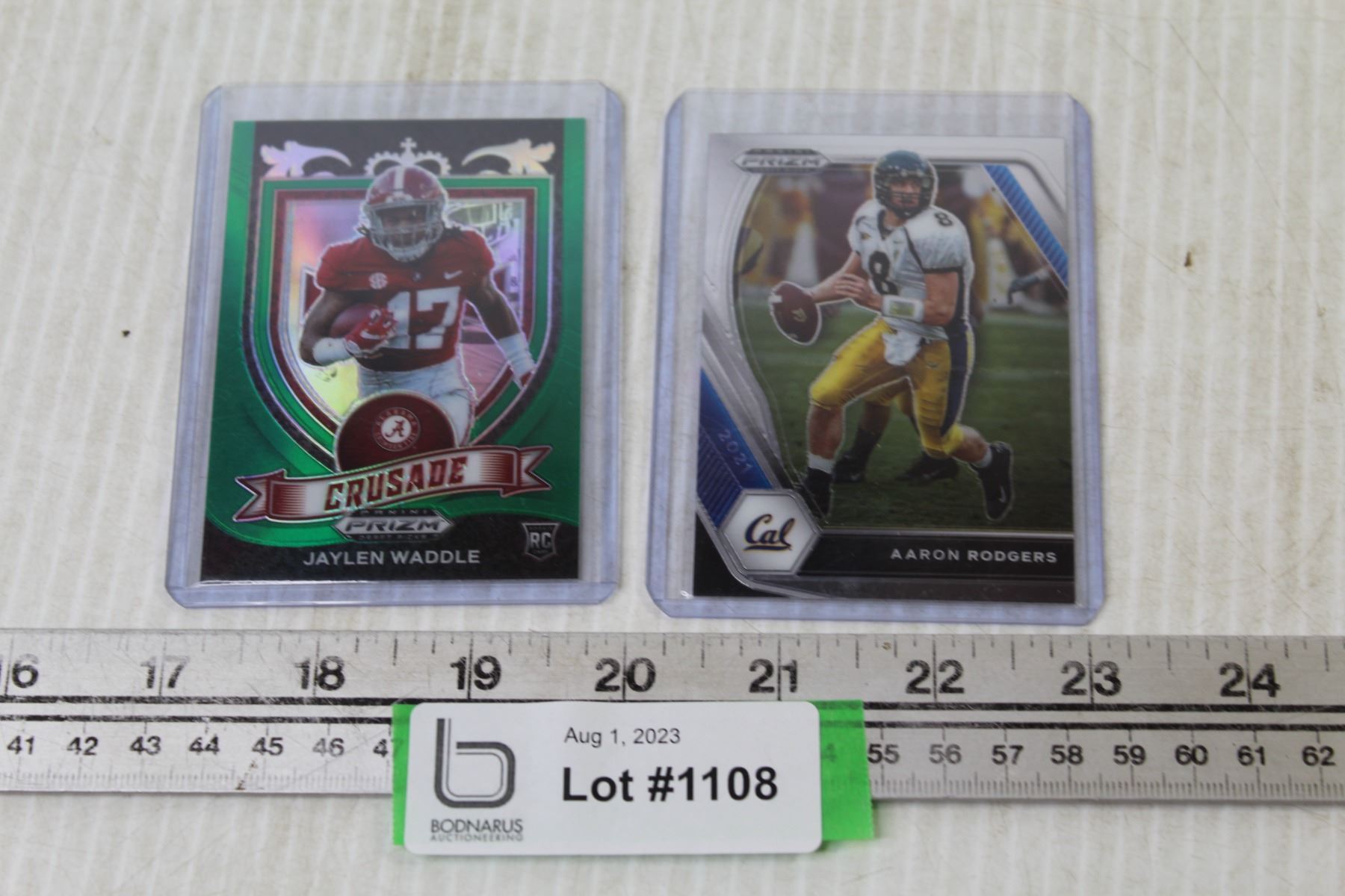 (2) Prizm NFL Cards -- Aaron Rogers College Rookie Card - Jaylene Waddle Silver Card