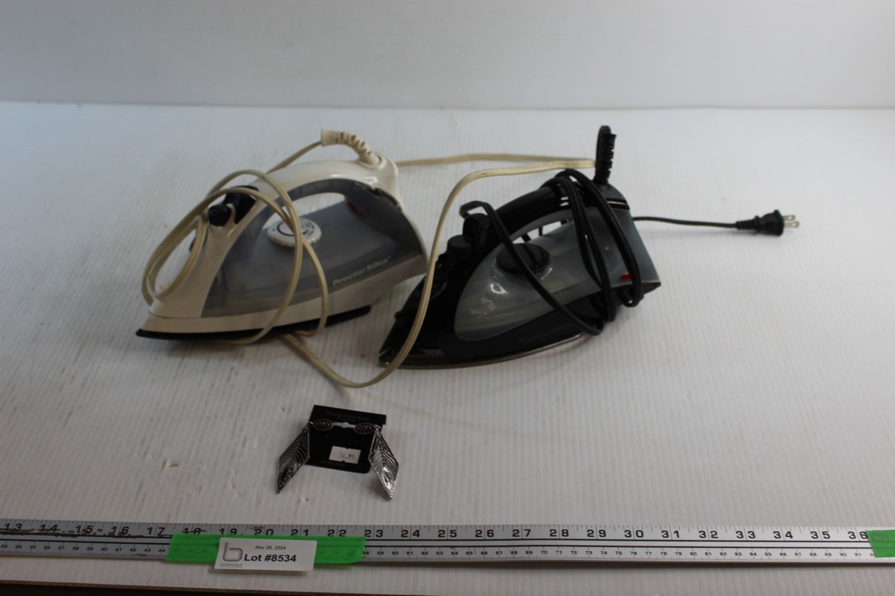 (2) ProctorSilex Clothes Irons - As Is and Earrings