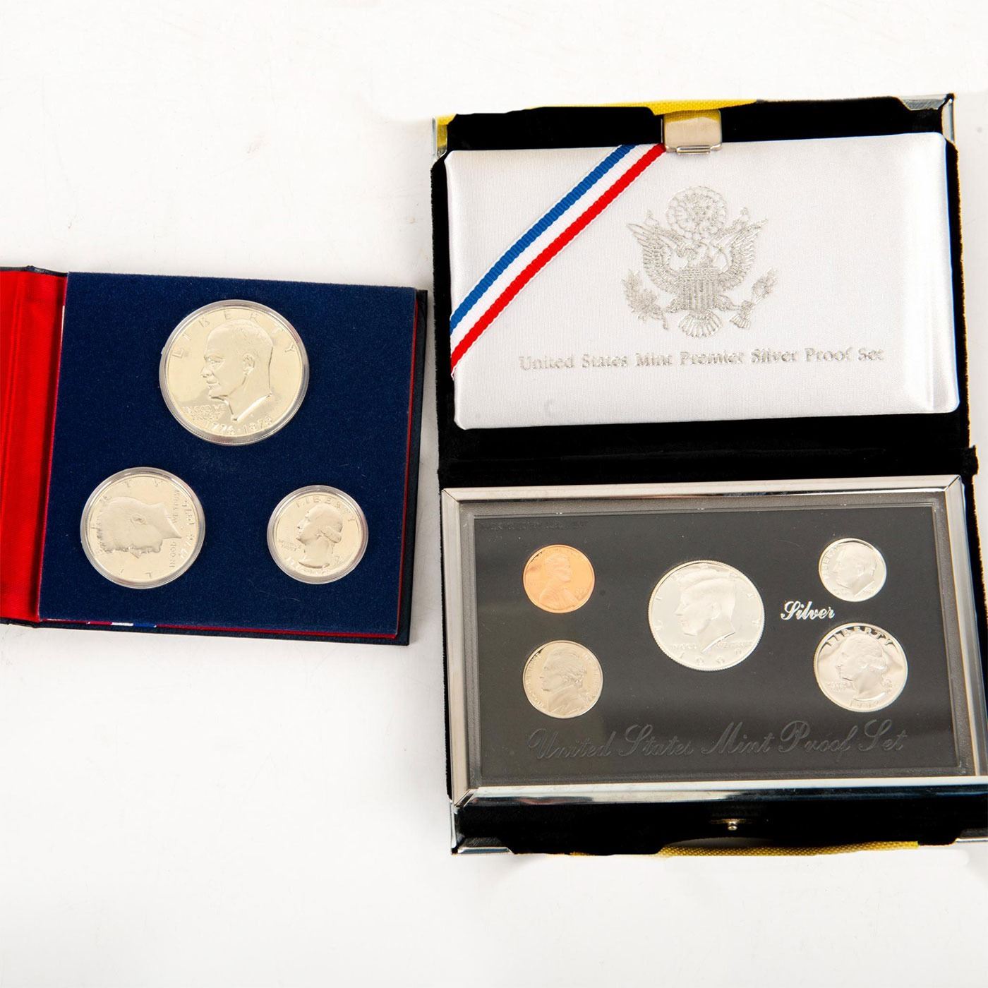 1 is a 1992 "United States mint premier silver proof set". The sets bear the mint mark "S" designation of the facility. The other is a "United States Bicentennial silver proof set". The US mint's 3-pieces are 40% silver proof coins, offered in honor of our nation's 200th anniversary of independence (1776-1976). Both come with original boxes and certificates. Coins and Currency, Numismatists