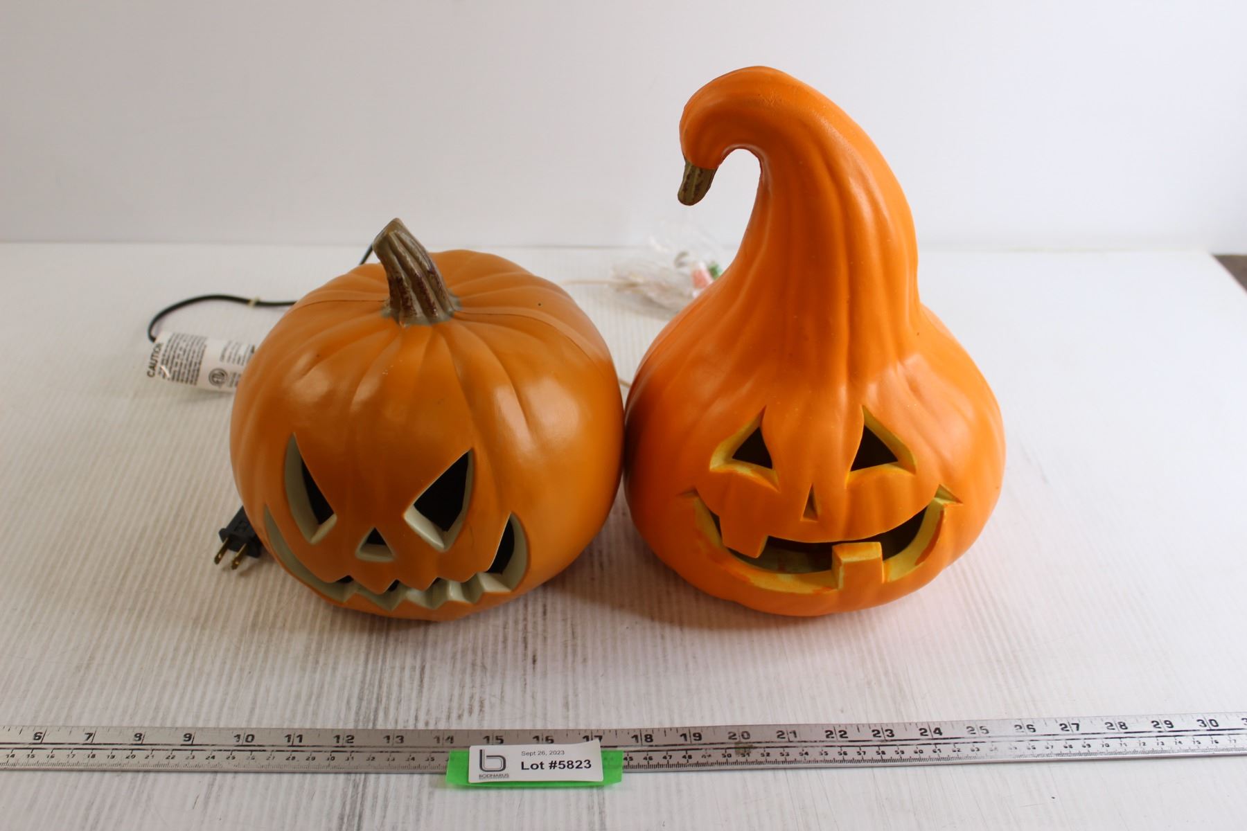 (2) Pumpkin Decorations - Both Work, Left Glows Red, Right Glows Yellow