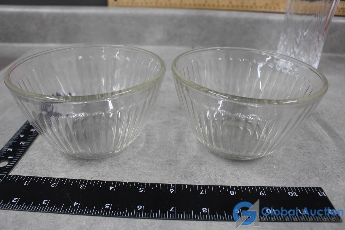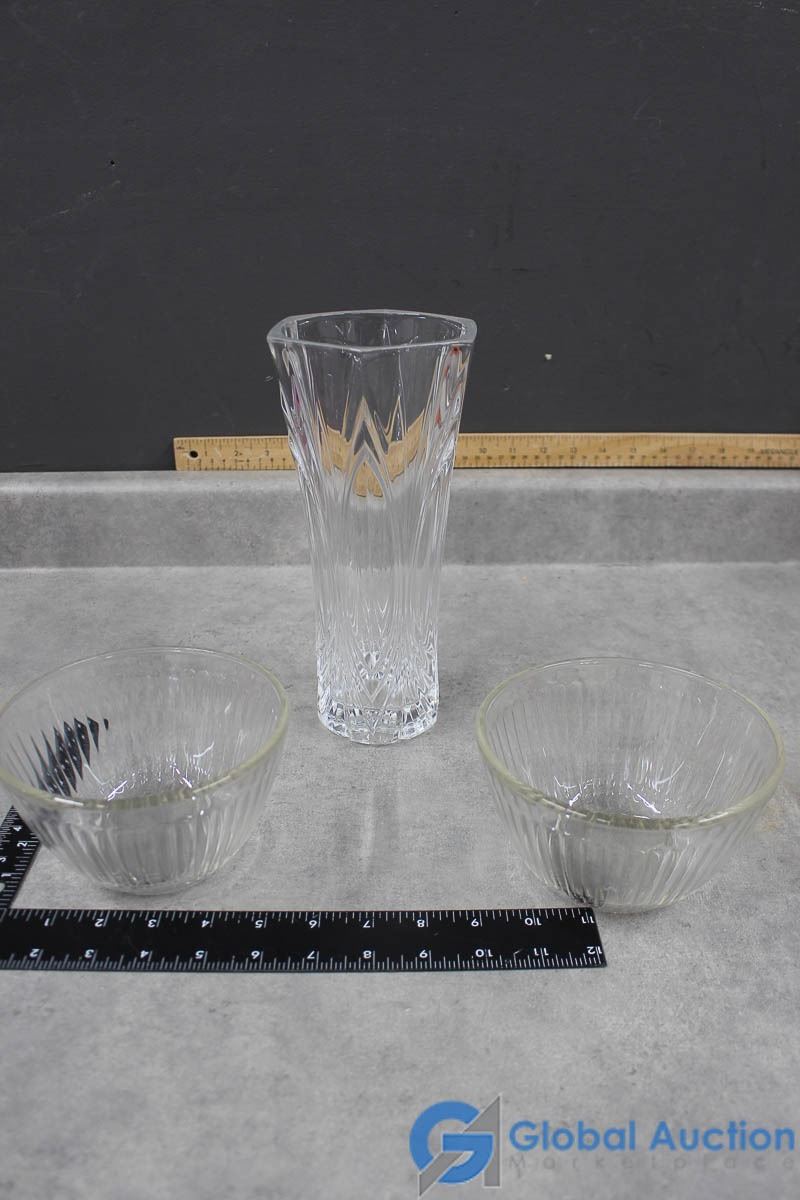 (2) Pyrex Bowls & Crystal Vase
