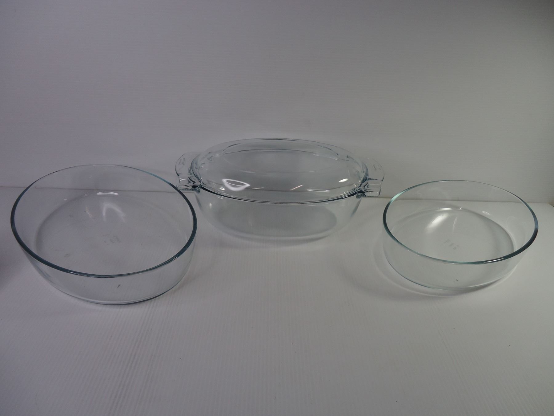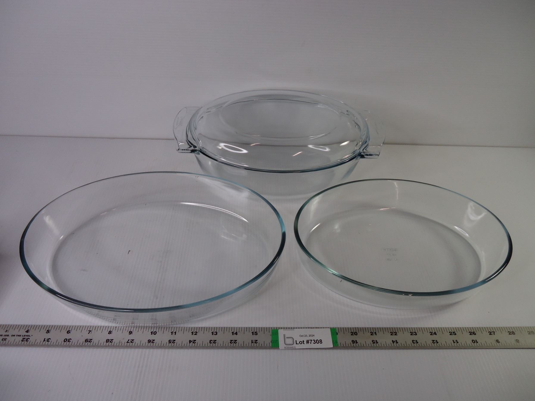 (2) Pyrex Clear Oval Baking Casserole Dish and Pyrex Clear Oval with Lid