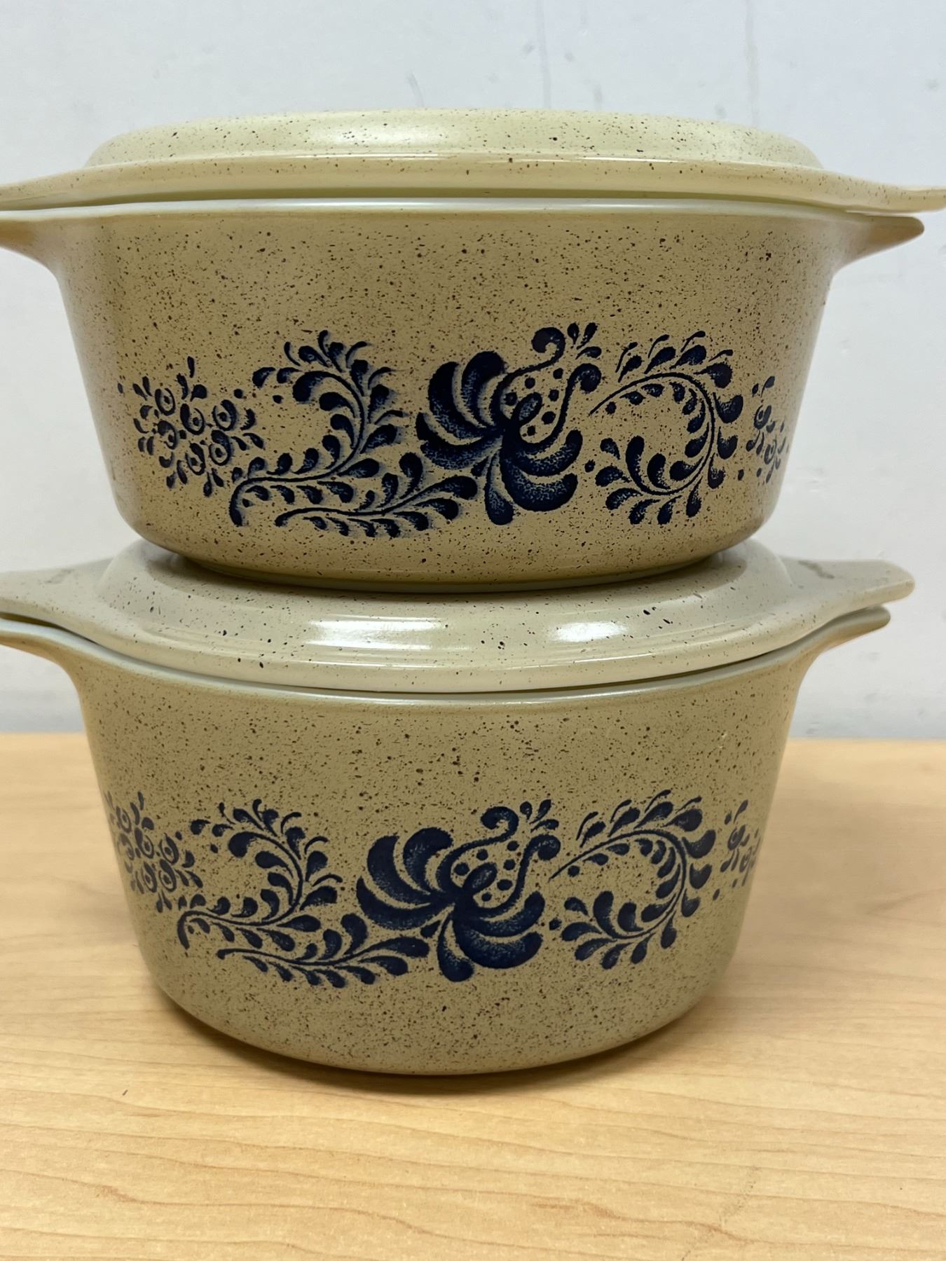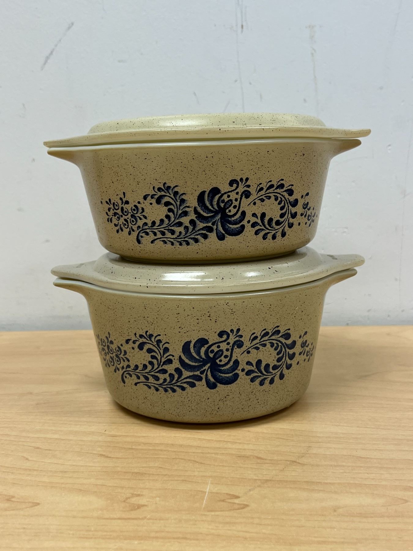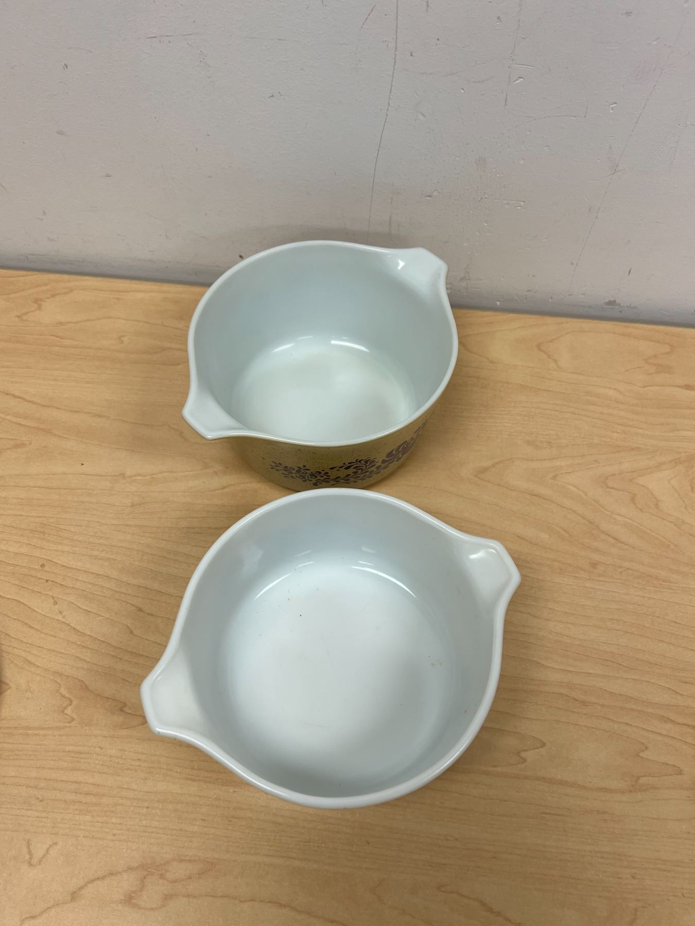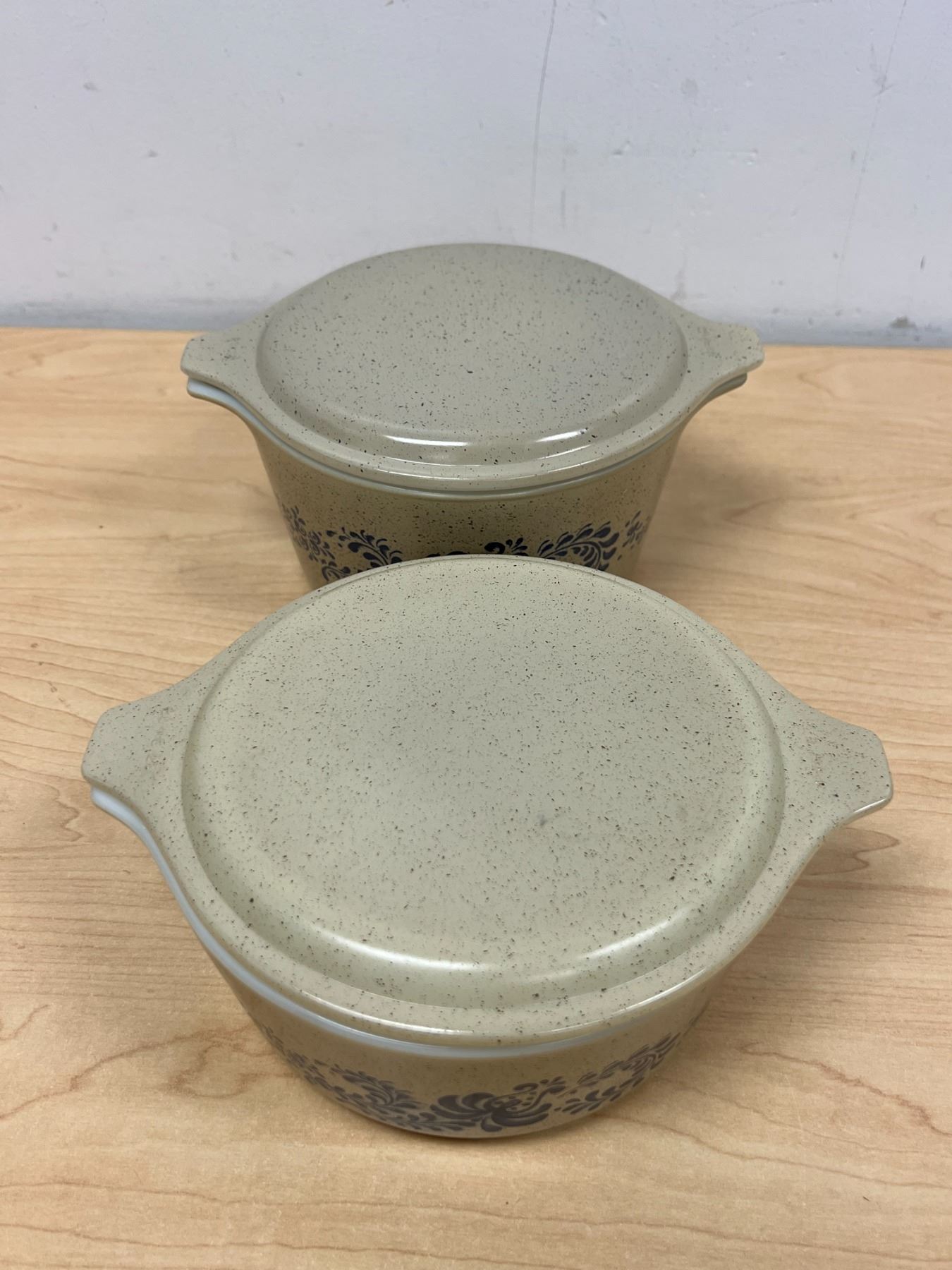 2 Pyrex Homestead Round Casseroles with Lids 1.5 Pt & 1 Qt - nice overall