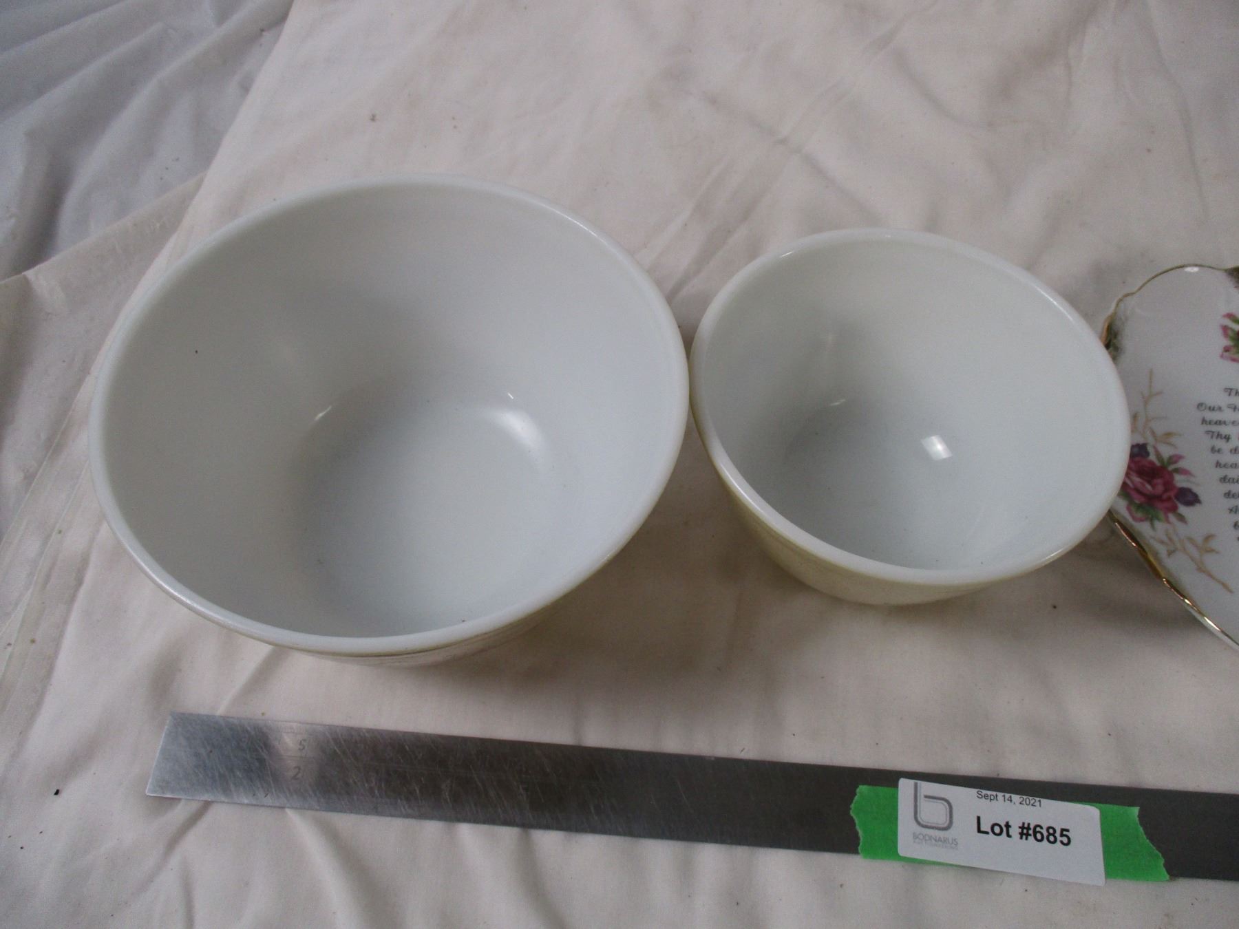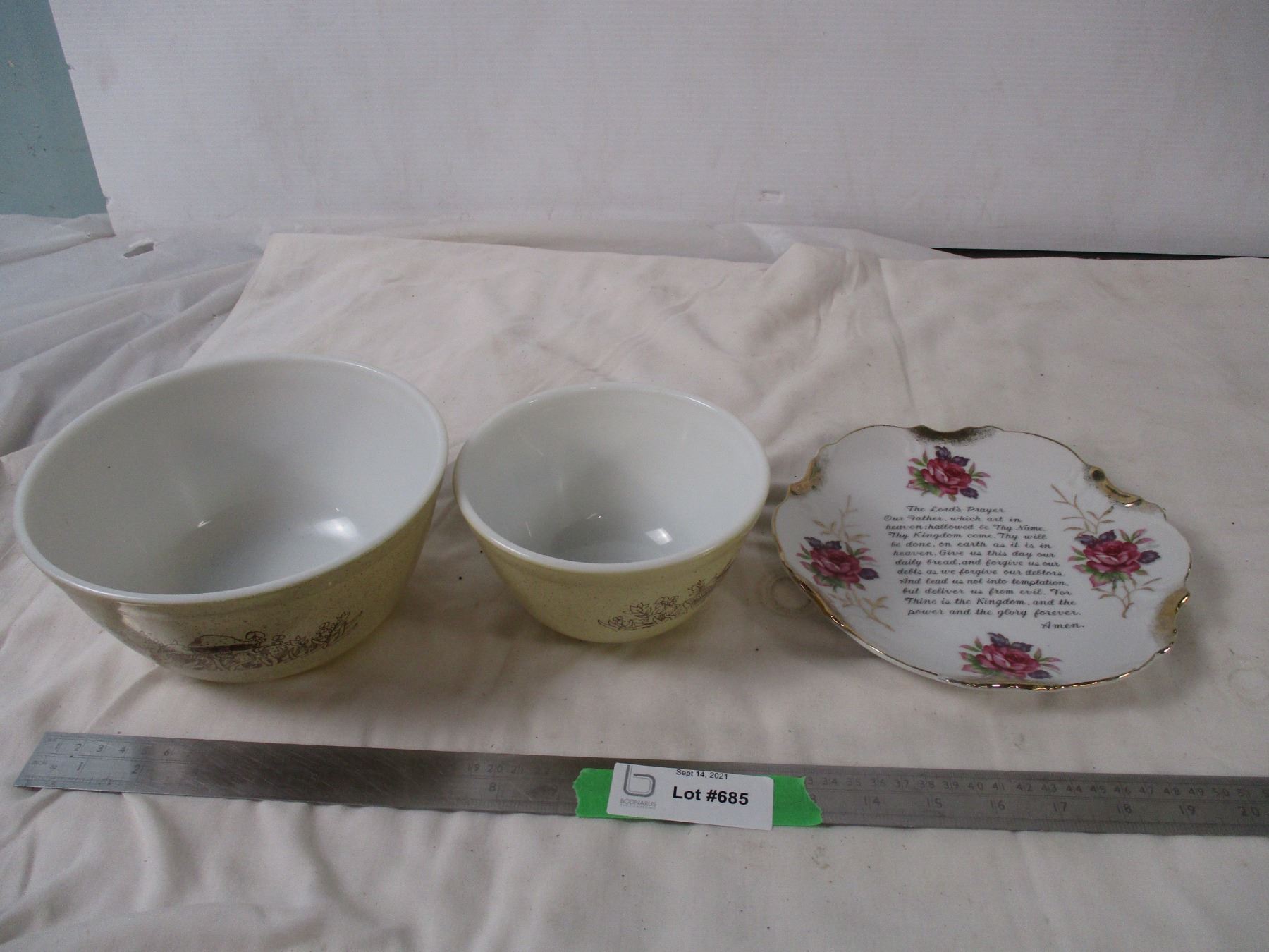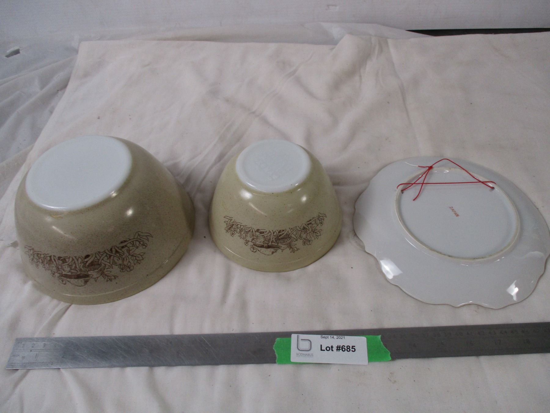 (2) Pyrex bowls plus decorative plate