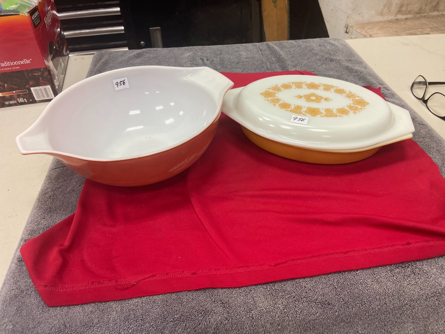 2 Pyrex pieces - bowl 10" and casserole bowl, with lid - 12x8"