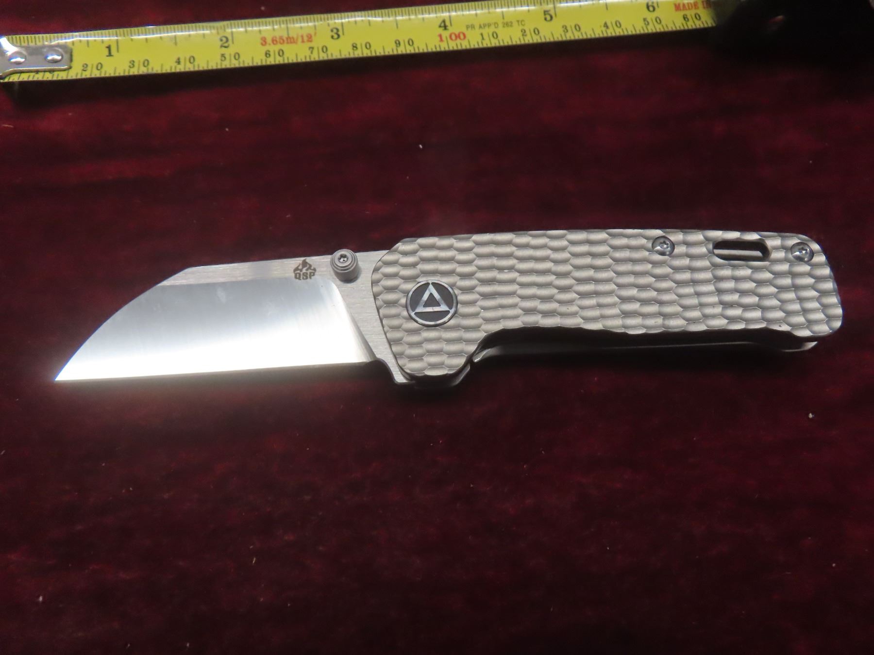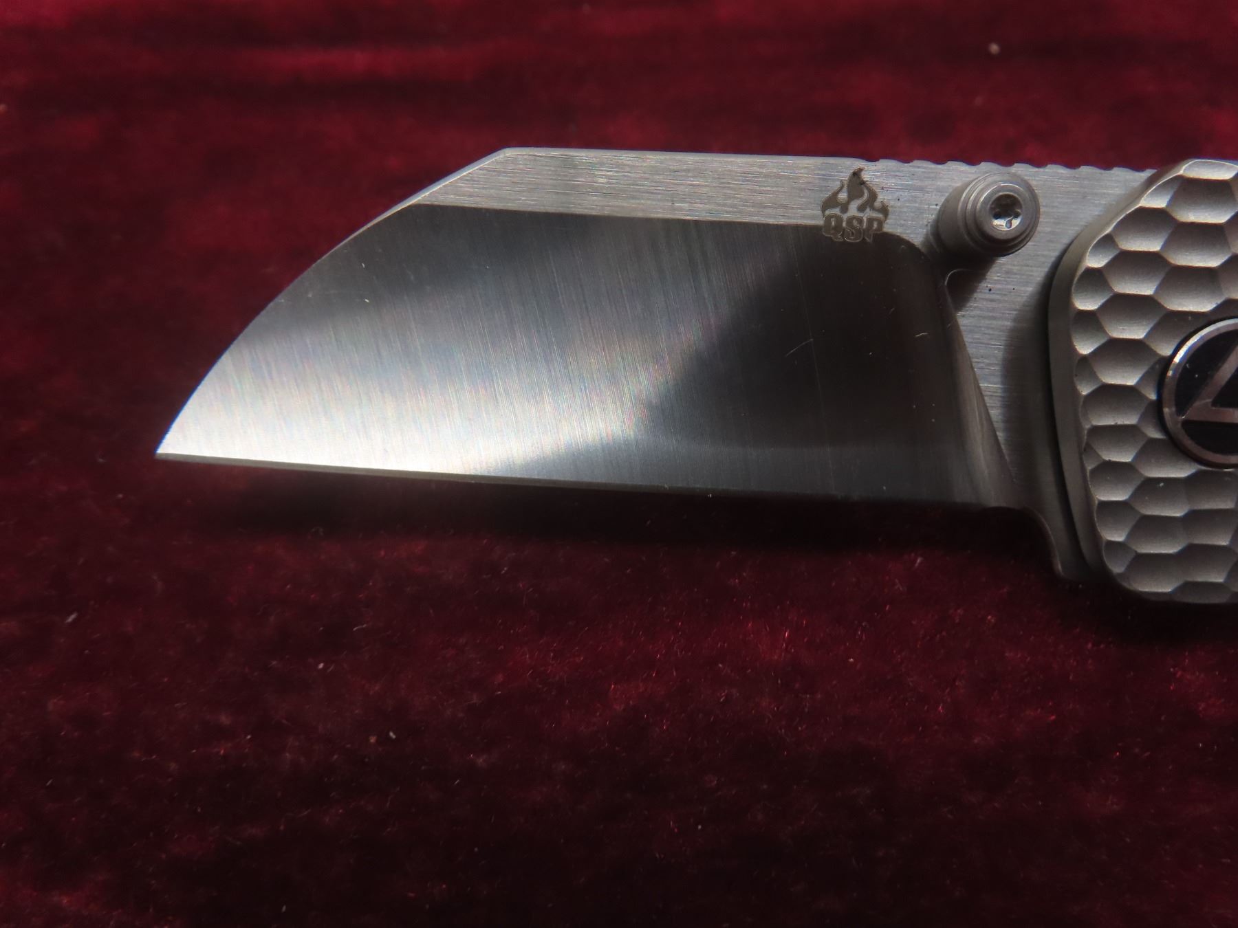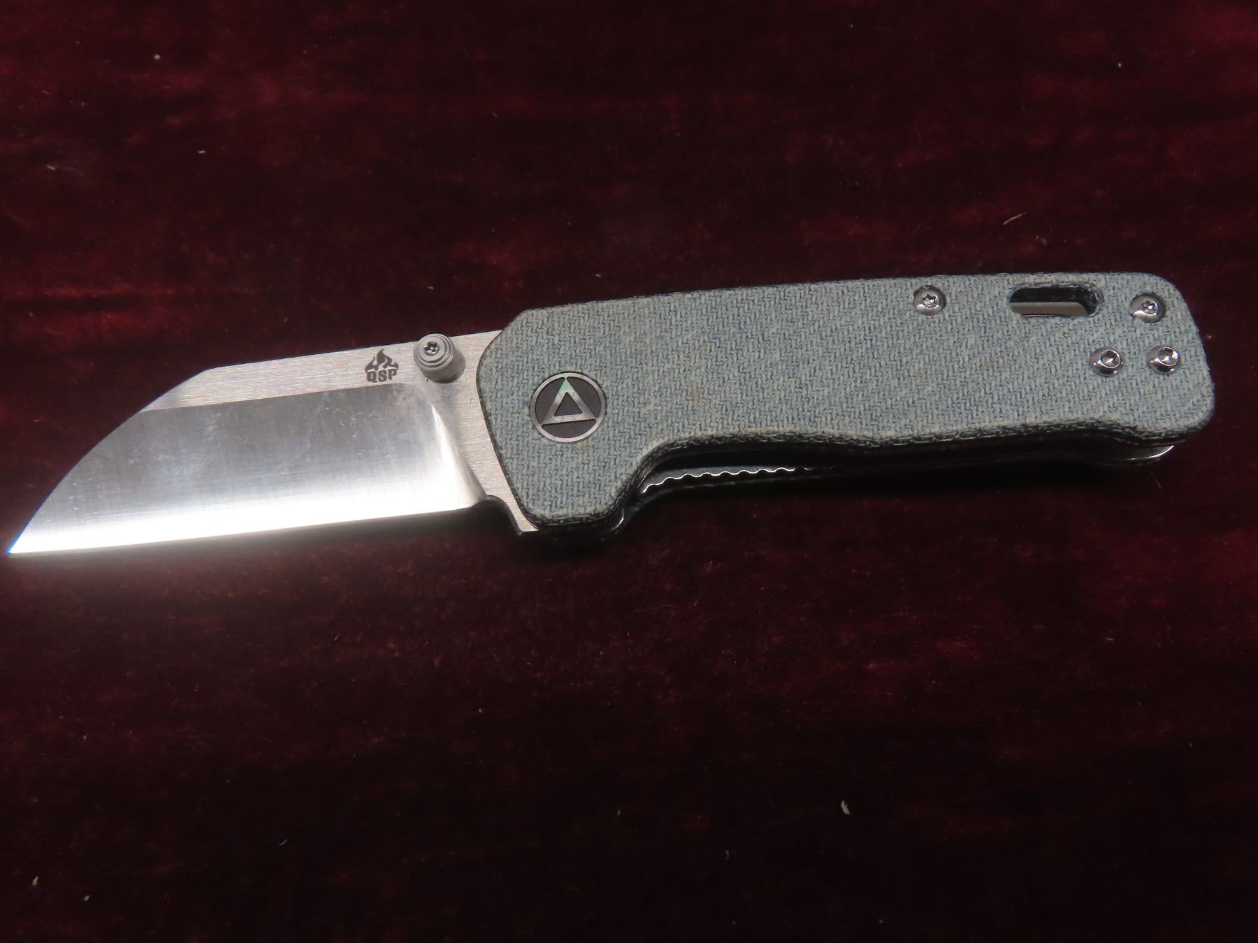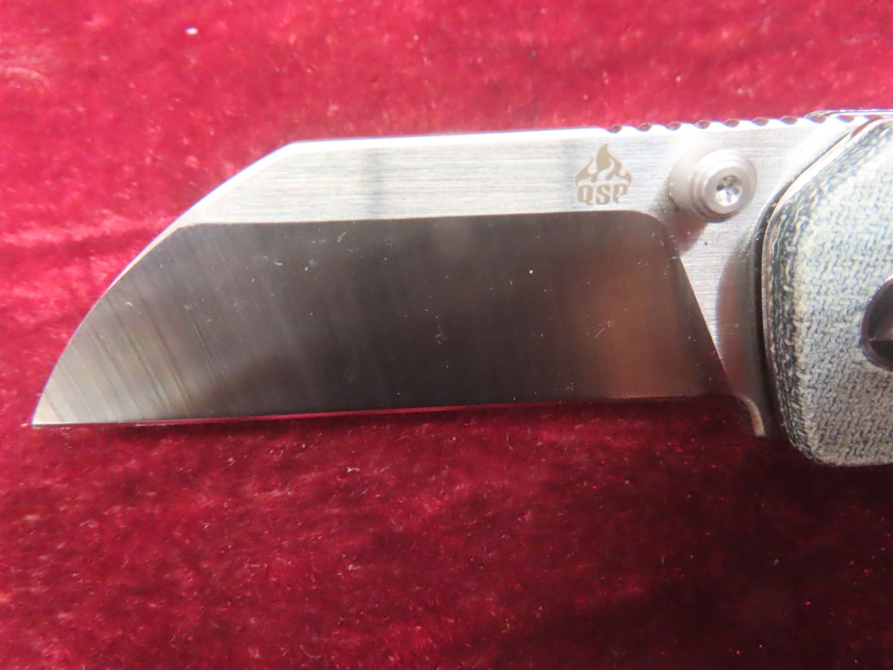 2 QSP Penguin Mini Folding Knives — 2-Tone Satin Sheepsfoot Blades; One With Denim Blue Micarta Handle And One With Grey Jigged Titanium Handle (M390).