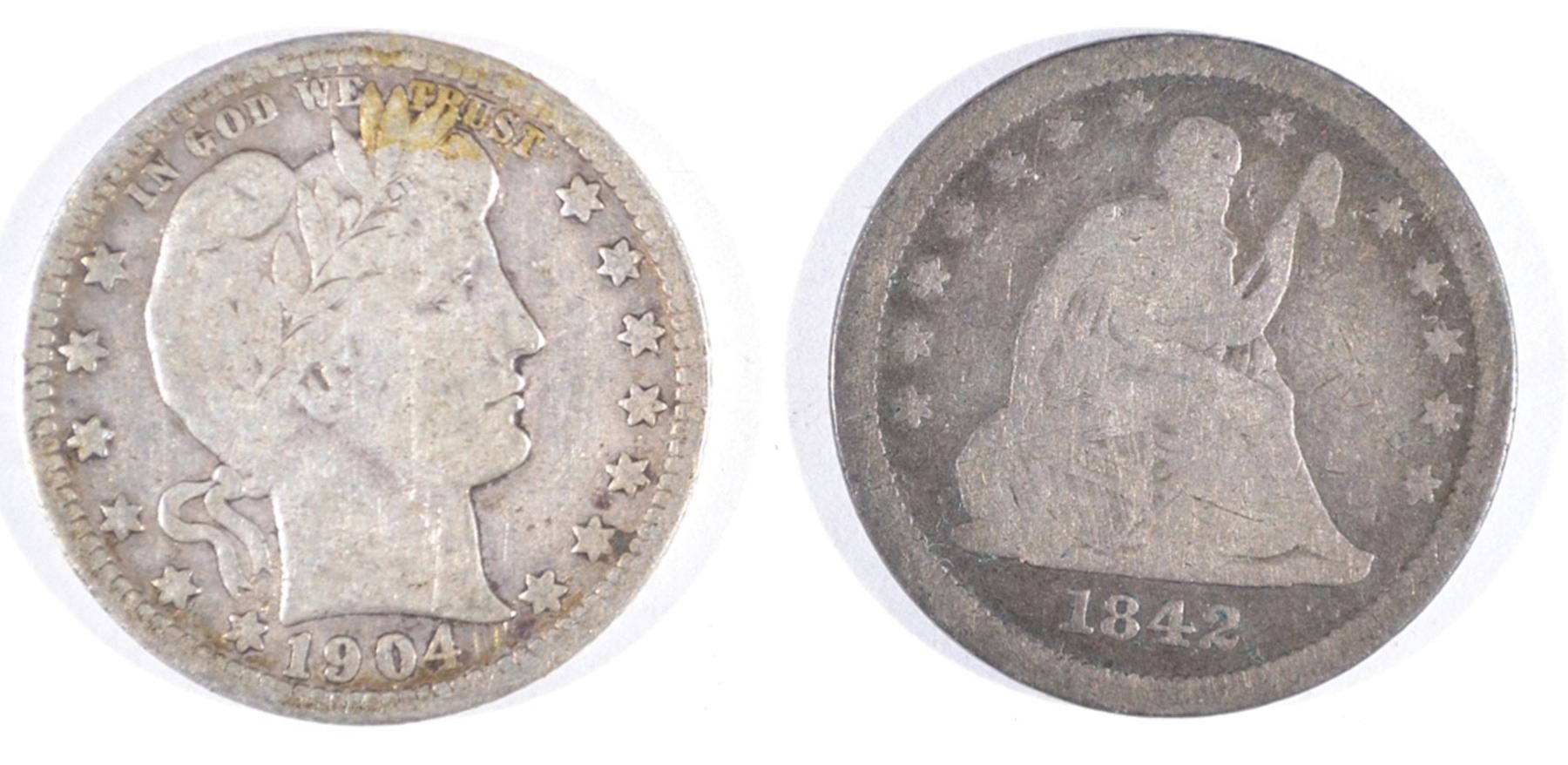 LIBERTY G/VG, 1904-O BARBER FINE ESTIMATE $110 - $120.