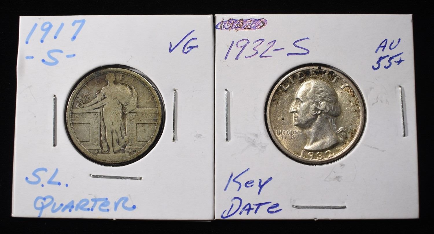 1917-S STANDING LIBERTY QUARTER & 1932-S WASHINGTON QUARTER ESTIMATE $200 - $250.