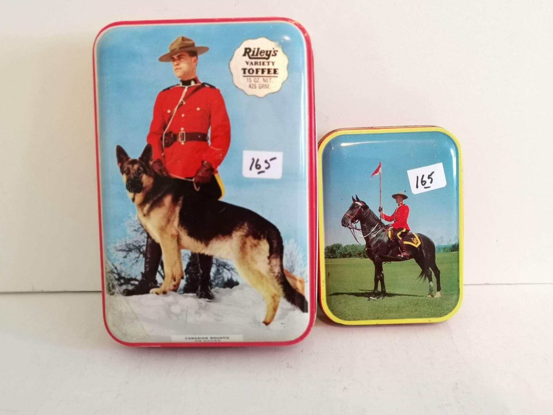 2 RCMP tins 4x5.5x1 6x8.5x2 good shape