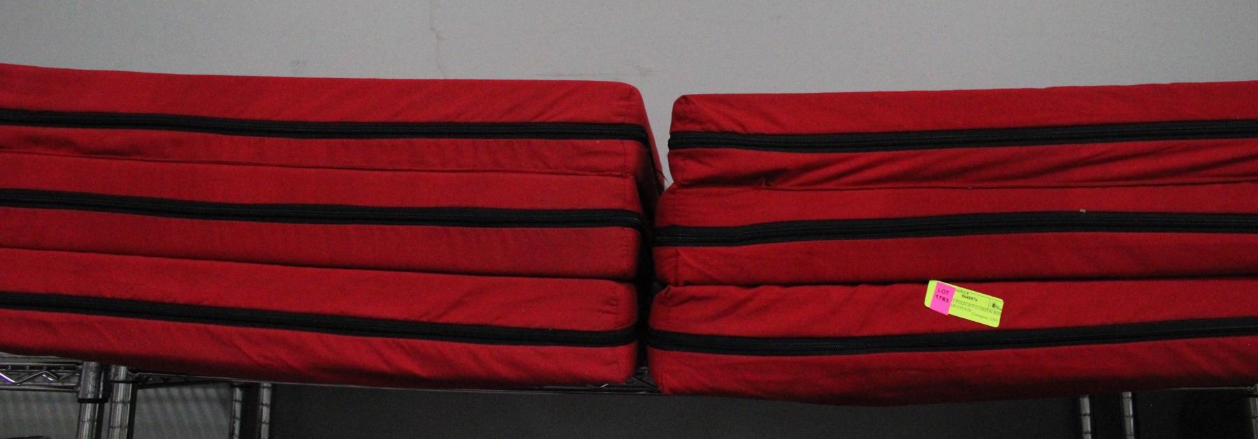 2 RED 6FT FOLD OUT CUSHION BEDS TOGETHER-ESTATE