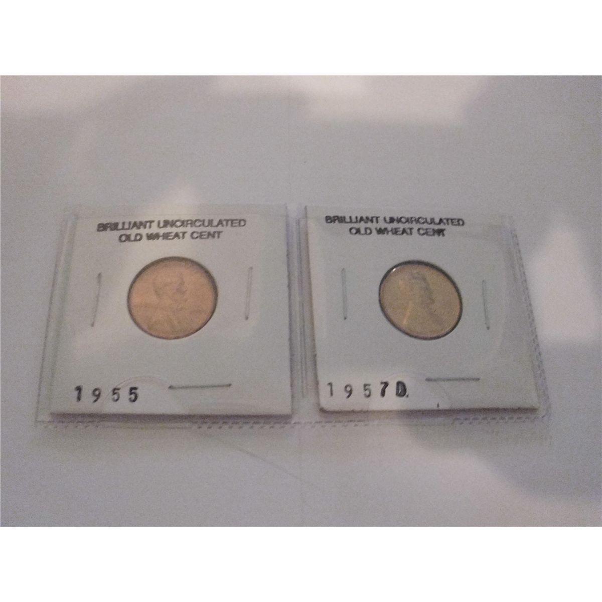 2 RED BRILLIANT UNCIRCULATED LINCOLN CENTS 1955/57D