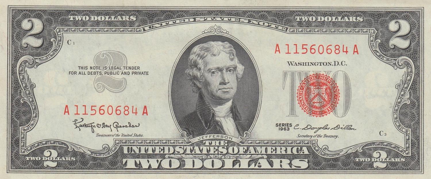 $2 RED SEAL 1963 CHERRY SEAL BOLD